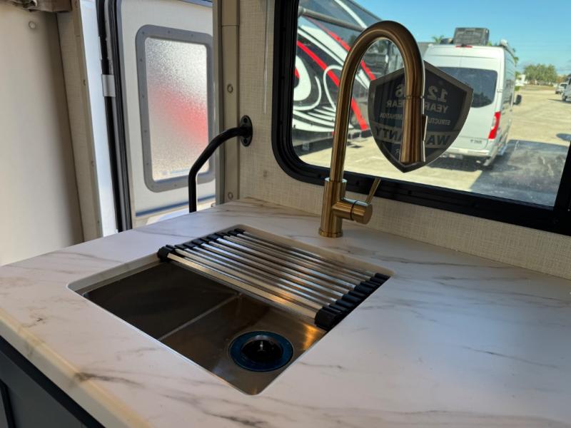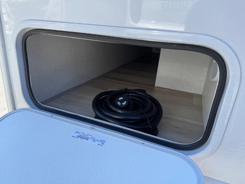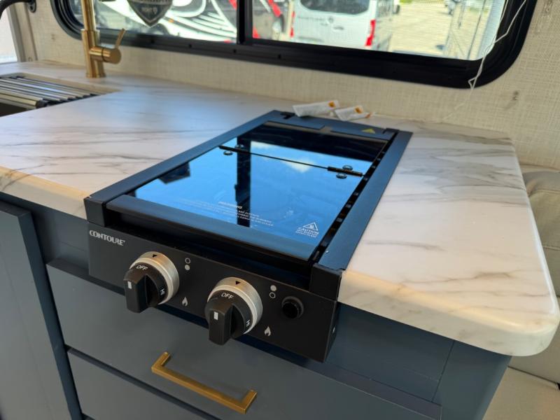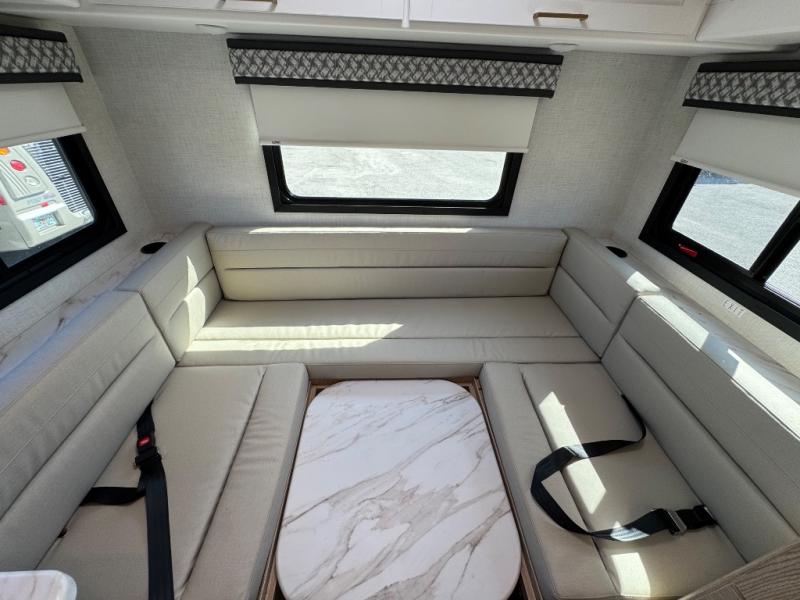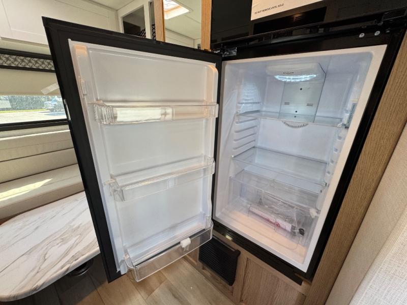 This compact, yet cozy coach is perfect for trips to the campground each weekend! Once you've reached your destination, you can set up the 11' power awning, unload the exterior storage compartments, and relax in your camp chairs. The two burner gas cooktop and convection microwave with an air fryer will let you make meals each day, and there is a 12V refrigerator to keep food fresh. A flip-up counter is another great feature that will give you more prep space! You can freshen up in the wet bath, grab your night clothes from the closet, then convert the U-shaped dinette into a 54" x 77" bed for a great night's rest!