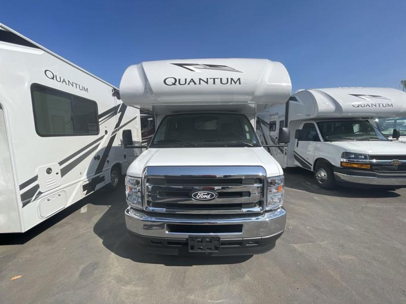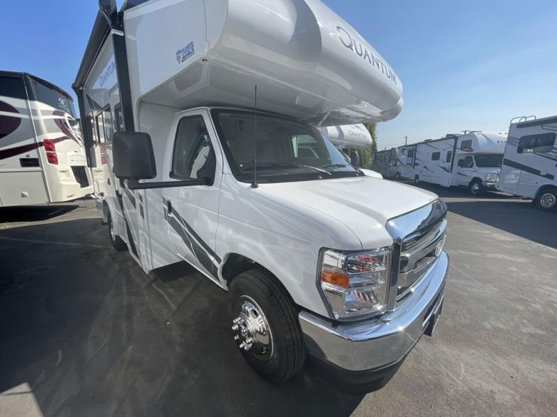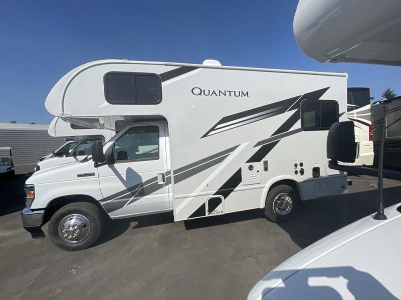 With any Quantum ESpec Essential Class C gas motorhome by Thor Motor Coach, you will find convenient amenities, a modern interior, and a reliable Ford E-Series chassis, with an optional Chevy chassis on select models to power your adventures. There is welded tubular aluminum roof and sidewall cage construction, a one-piece fiberglass front cap, and premium one-piece Crossflex exterior roofing for added strength. Residential vinyl flooring will be easy to keep clean, and you'll love the sleek look of the Harbor Collection, three-toned cabinets. These motorhomes also include a 50 state 4.0 kW dual gas/LP generator and a 30-amp shoreline power cord to keep you going, along with a tankless water heater and 13,500 roof front A/C to ensure your comfort!
