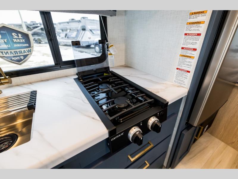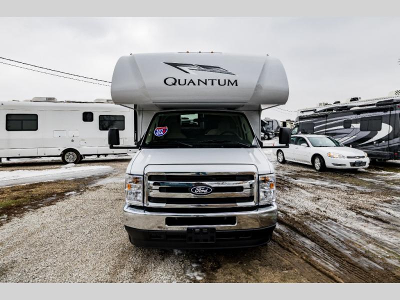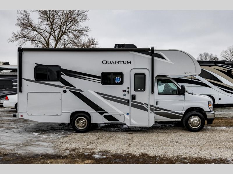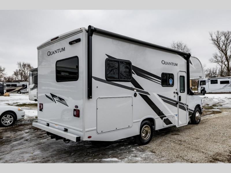 With any Quantum ESpec Essential Class C gas motorhome by Thor Motor Coach, you will find convenient amenities, a modern interior, and a reliable Ford E-Series chassis, with an optional Chevy chassis on select models to power your adventures. There is welded tubular aluminum roof and sidewall cage construction, a one-piece fiberglass front cap, and premium one-piece Crossflex exterior roofing for added strength. Residential vinyl flooring will be easy to keep clean, and you'll love the sleek look of the Harbor Collection, three-toned cabinets. These motorhomes also include a 50 state 4.0 kW dual gas/LP generator and a 30-amp shoreline power cord to keep you going, along with a tankless water heater and 13,500 roof front A/C to ensure your comfort!