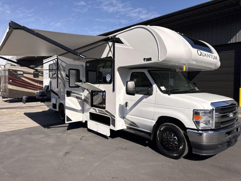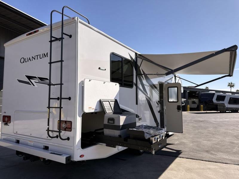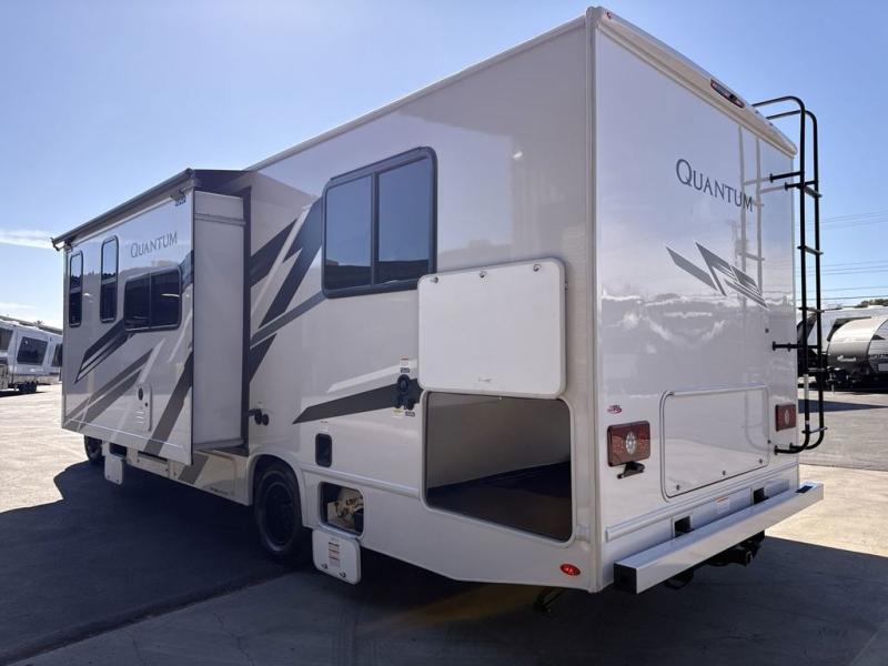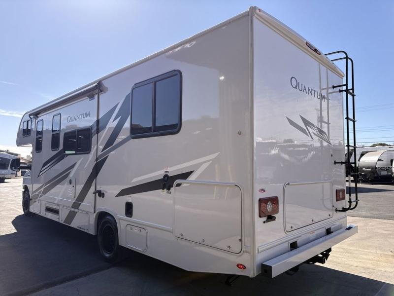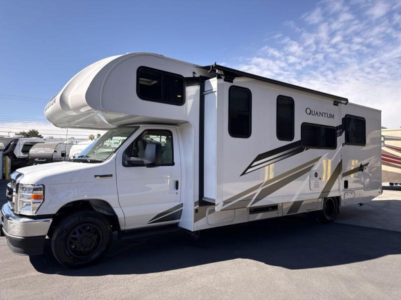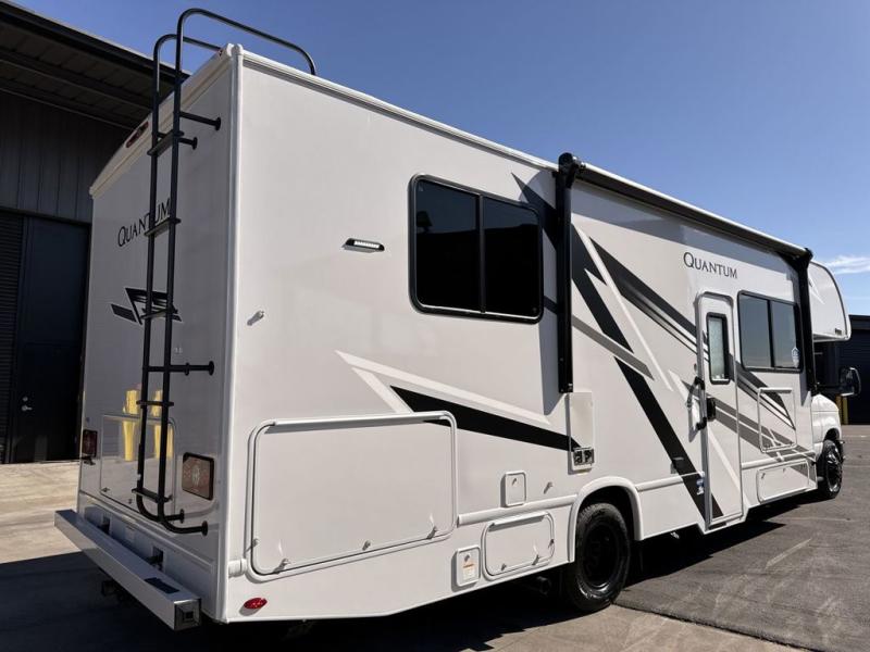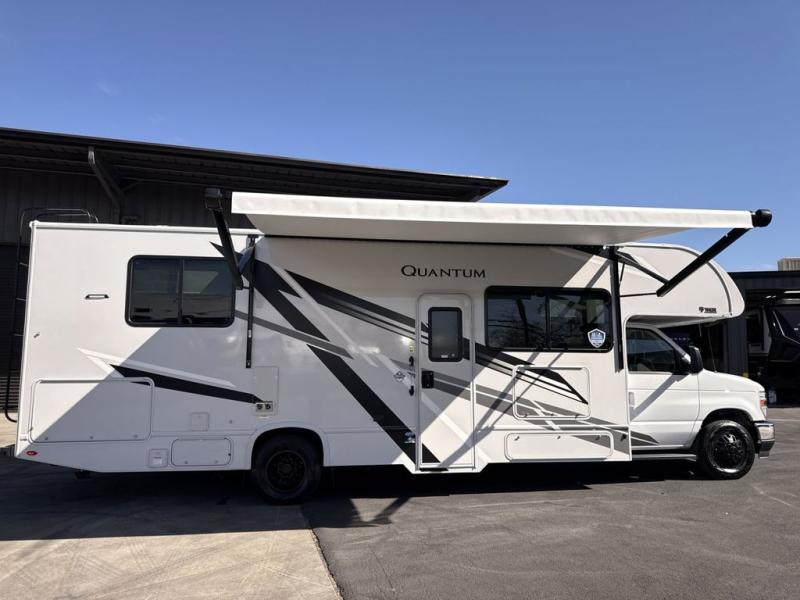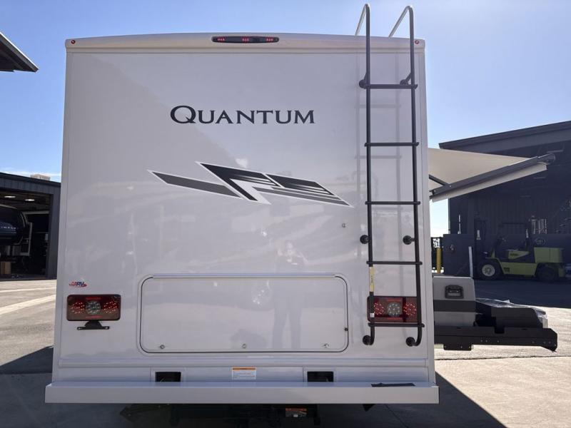 With any Quantum Class C gas motorhome by Thor Motor Coach, you will find a premium one-piece domed roof membrane for added durability, plus a SmoothTECH ride enhancement for better handling. The interior offers residential vinyl flooring, Leatherette furniture, and full extension soft close metal ball-bearing drawer guides. The driver is sure to appreciate the touchscreen dash radio and back-up monitor to make maneuvering in and out of campgrounds easier than ever. These motorhomes also feature a 100-watt solar charging system for off-grid capabilities, a tankless water heater, an exterior LP connection and many more conveniences.
