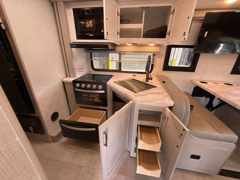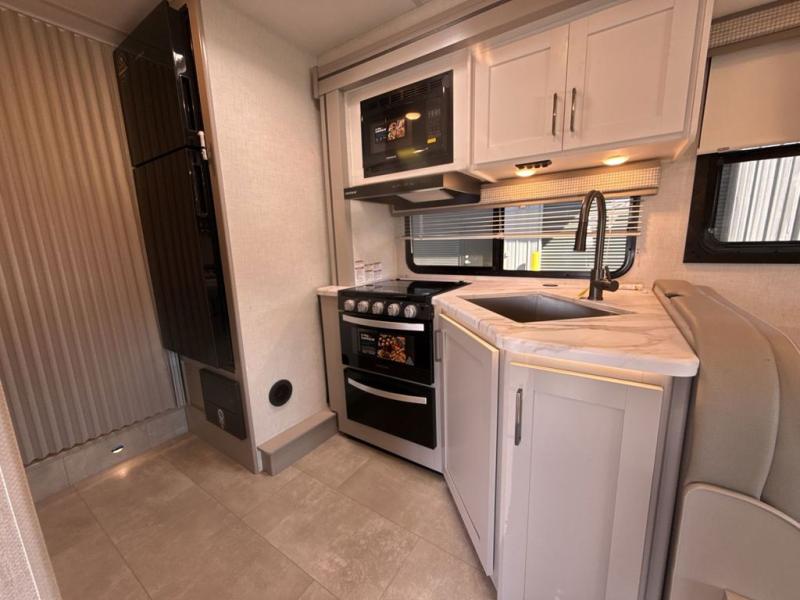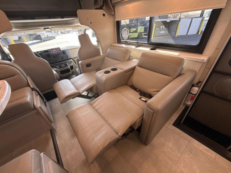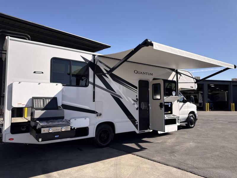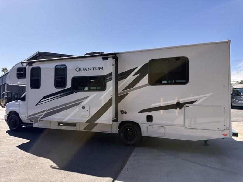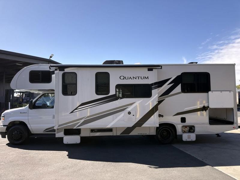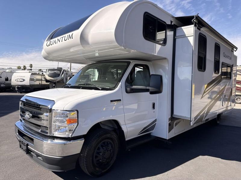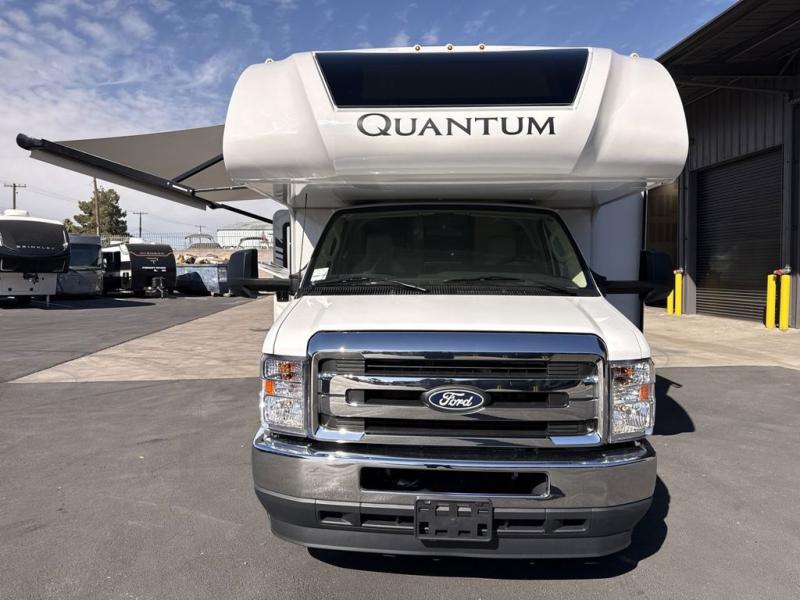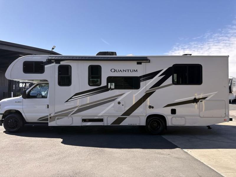 With any Quantum Class C gas motorhome by Thor Motor Coach, you will find a premium one-piece domed roof membrane for added durability, plus a SmoothTECH ride enhancement for better handling. The interior offers residential vinyl flooring, Leatherette furniture, and full extension soft close metal ball-bearing drawer guides. The driver is sure to appreciate the touchscreen dash radio and back-up monitor to make maneuvering in and out of campgrounds easier than ever. These motorhomes also feature a 100-watt solar charging system for off-grid capabilities, a tankless water heater, an exterior LP connection and many more conveniences.