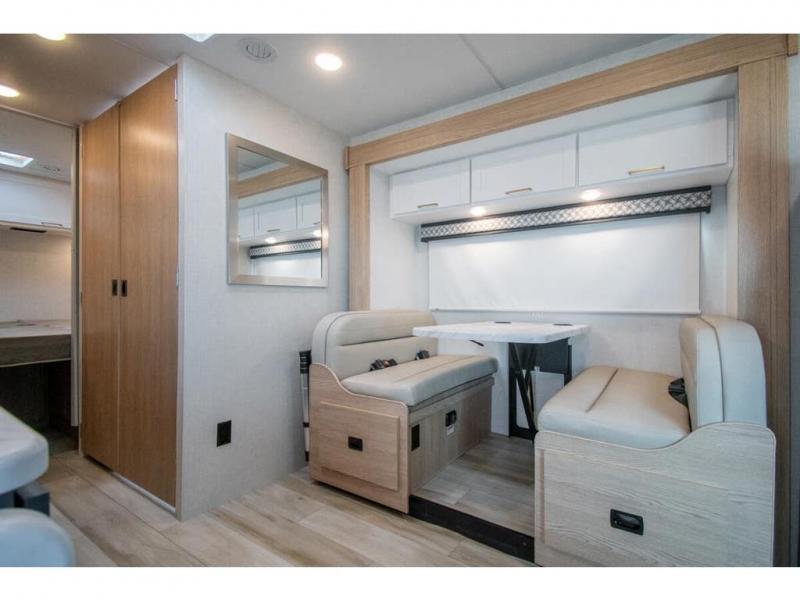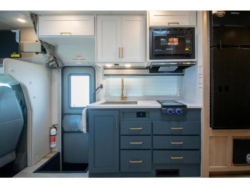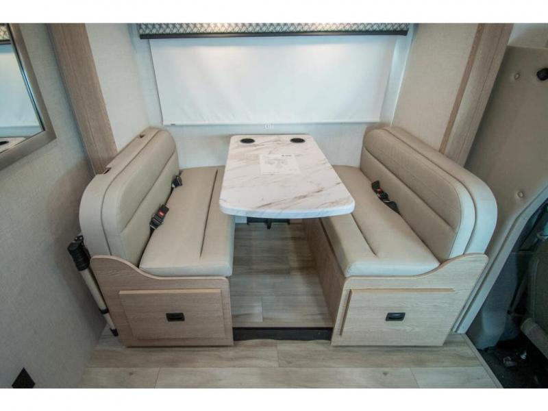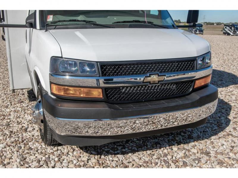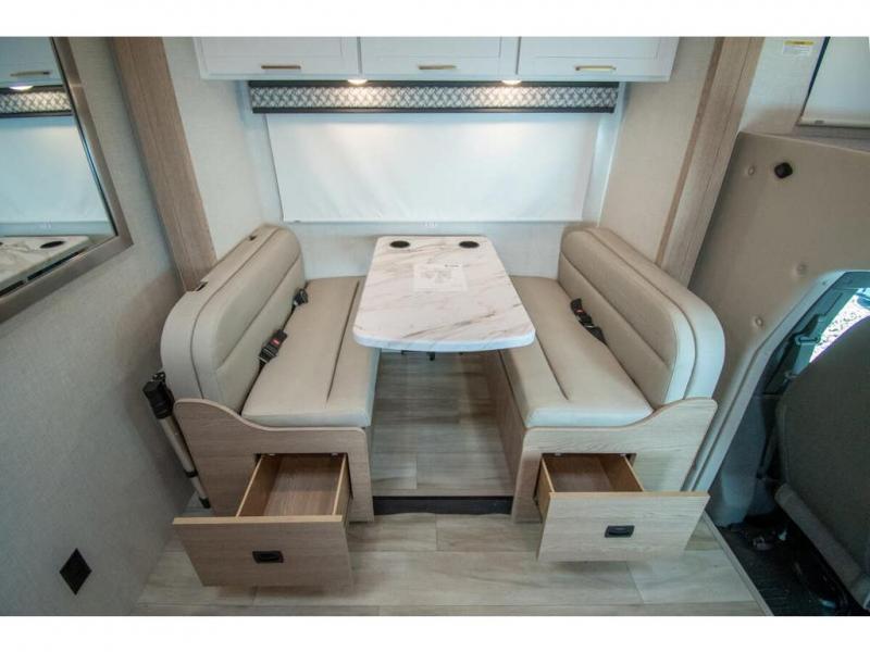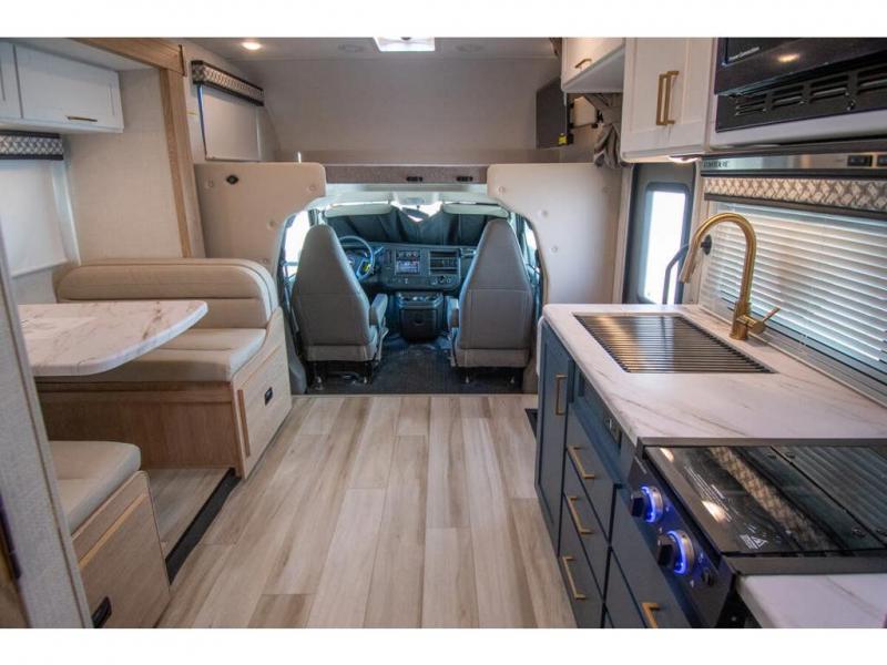 With any Quantum ESpec Essential Class C gas motorhome by Thor Motor Coach, you will find convenient amenities, a modern interior, and a reliable Ford E-Series chassis, with an optional Chevy chassis on select models to power your adventures. There is welded tubular aluminum roof and sidewall cage construction, a one-piece fiberglass front cap, and premium one-piece Crossflex exterior roofing for added strength. Residential vinyl flooring will be easy to keep clean, and you'll love the sleek look of the Harbor Collection, three-toned cabinets. These motorhomes also include a 50 state 4.0 kW dual gas/LP generator and a 30-amp shoreline power cord to keep you going, along with a tankless water heater and 13,500 roof front A/C to ensure your comfort!