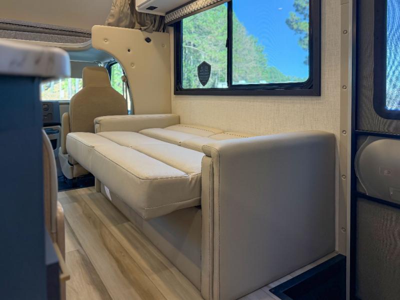 With any Quantum ESpec Essential Class C gas motorhome by Thor Motor Coach, you will find convenient amenities, a modern interior, and a reliable Ford E-Series chassis, with an optional Chevy chassis on select models to power your adventures. There is welded tubular aluminum roof and sidewall cage construction, a one-piece fiberglass front cap, and premium one-piece Crossflex exterior roofing for added strength. Residential vinyl flooring will be easy to keep clean, and you'll love the sleek look of the Harbor Collection, three-toned cabinets. These motorhomes also include a 50 state 4.0 kW dual gas/LP generator and a 30-amp shoreline power cord to keep you going, along with a tankless water heater and 13,500 roof front A/C to ensure your comfort!