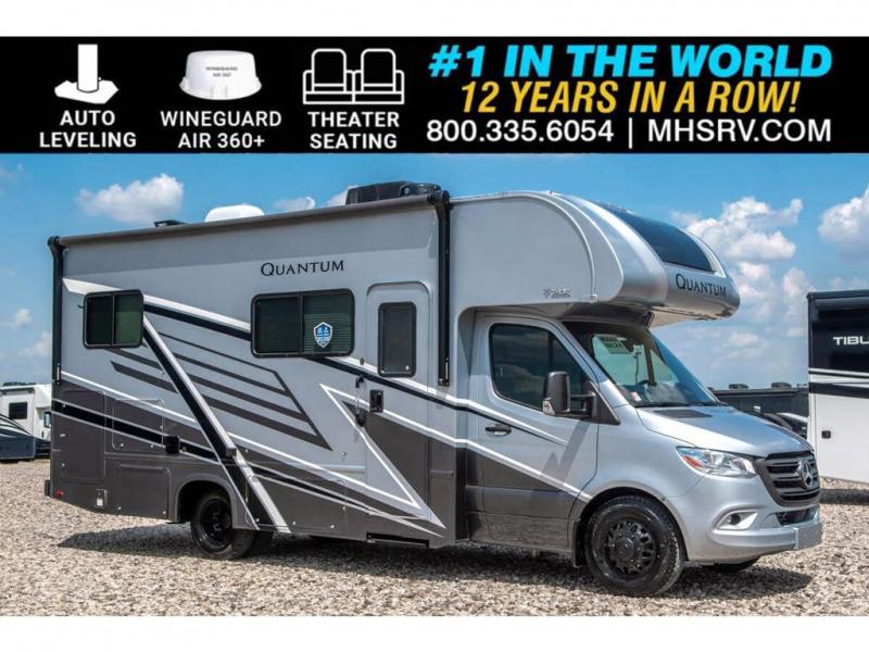 MSRP $238,434. New 2026 Thor Motor Coach Quantum Sprinter Mercedes Diesel Model GL24. This Luxury RV measures approximately 25 feet 10 inches in length and rides on the premier Mercedes Benz Sprinter chassis equipped with an Active Braking Assist system, Attention Assist, Active Lane Assist, a Wet Wiper System and Distance Regulator Distronic Plus. You will also find a tank-less water heater, generator and the ultra-high-line cabinetry from TMC that set this coach apart from the competition! Optional equipment includes the auto leveling jacks and child safety net. The all new Quantum Sprinter also features a fiberglass front cap with skylight, an power patio awning with integrated LED lighting, a multimedia dash radio with Bluetooth and navigation, remote exterior mirrors, back up system, swivel captain’s chairs, keyless entry, valve stem extensions, full extension metal ball-bearing drawer guides, 12v refrigerator with auto generator start, solid surface kitchen countertop, convection microwave oven with air fryer, outside shower, solar, , holding tanks with heat pads and much more. Shop hundreds of motorhomes including class C diesel RVs at 1 location! Choose from Thor Delano – Tiburon – Chateau – Four Winds – Quantum – Entegra Coach Qwest – Qwest SE – East to West Entrada M Class – Forester MBS – Dynamax Isata 3 and much more. We also sell quality pre-owned models such as Jayco Melbourne – Melbourne Prestige – Tiffin Wayfarer – Forest River Sunseeker MBS – Solera – Winnebago View – Navion – Vita – Porto – Renegade Vienna – Coachmen Prism – Prism Elite – Grand Design Lineage – Holiday Rambler Element and much more. Visit MHSRV.com for our complete line-up and the sale prices that have made us the #1 volume selling motor home dealership in the world 12 years in a row! For additional details on this unit and our entire inventory including brochures, window sticker, videos, photos, reviews & testimonials as well as additional information about Motor Home Specialist and our manufacturers please visit us at MHSRV.com or call 800-335-6054. At Motor Home Specialist, we DO NOT charge any prep or orientation fees like you will find at other dealerships. All sale prices include a 200-point inspection, interior & exterior wash, detail service and a fully automated high-pressure rain booth test and coach wash that is a standout service unlike that of any other in the industry. You will also receive a thorough coach orientation with an MHSRV technician, a night stay in our delivery park featuring landscaped and covered pads with full hook-ups and much more! Read Thousands upon Thousands of 5-Star Reviews at MHSRV.com and See What They Had to Say About Their Experience at Motor Home Specialist. WHY PAY MORE? WHY SETTLE FOR LESS?