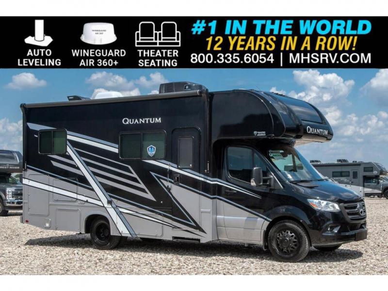 MSRP $202,447. New 2026 Thor Motor Coach Quantum Sprinter Mercedes Diesel Model GL24. This Luxury RV measures approximately 25 feet 10 inches in length and rides on the premier Mercedes Benz Sprinter chassis equipped with an Active Braking Assist system, Attention Assist, Active Lane Assist, a Wet Wiper System and Distance Regulator Distronic Plus. You will also find a tank-less water heater, generator and the ultra-high-line cabinetry from TMC that set this coach apart from the competition! Optional equipment includes the auto leveling jacks and child safety net. The all new Quantum Sprinter also features a fiberglass front cap with skylight, an power patio awning with integrated LED lighting, a multimedia dash radio with Bluetooth and navigation, remote exterior mirrors, back up system, swivel captain’s chairs, keyless entry, valve stem extensions, full extension metal ball-bearing drawer guides, 12v refrigerator with auto generator start, solid surface kitchen countertop, convection microwave oven with air fryer, outside shower, solar, , holding tanks with heat pads and much more. Shop hundreds of motorhomes including class C diesel RVs at 1 location! Choose from Thor Delano – Tiburon – Chateau – Four Winds – Quantum – Entegra Coach Qwest – Qwest SE – East to West Entrada M Class – Forester MBS – Dynamax Isata 3 and much more. We also sell quality pre-owned models such as Jayco Melbourne – Melbourne Prestige – Tiffin Wayfarer – Forest River Sunseeker MBS – Solera – Winnebago View – Navion – Vita – Porto – Renegade Vienna – Coachmen Prism – Prism Elite – Grand Design Lineage – Holiday Rambler Element and much more. Visit MHSRV.com for our complete line-up and the sale prices that have made us the #1 volume selling motor home dealership in the world 12 years in a row! For additional details on this unit and our entire inventory including brochures, window sticker, videos, photos, reviews & testimonials as well as additional information about Motor Home Specialist and our manufacturers please visit us at MHSRV.com or call 800-335-6054. At Motor Home Specialist, we DO NOT charge any prep or orientation fees like you will find at other dealerships. All sale prices include a 200-point inspection, interior & exterior wash, detail service and a fully automated high-pressure rain booth test and coach wash that is a standout service unlike that of any other in the industry. You will also receive a thorough coach orientation with an MHSRV technician, a night stay in our delivery park featuring landscaped and covered pads with full hook-ups and much more! Read Thousands upon Thousands of 5-Star Reviews at MHSRV.com and See What They Had to Say About Their Experience at Motor Home Specialist. WHY PAY MORE? WHY SETTLE FOR LESS?