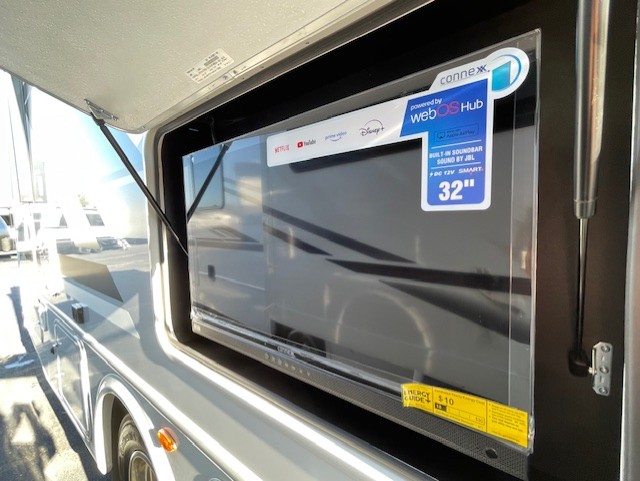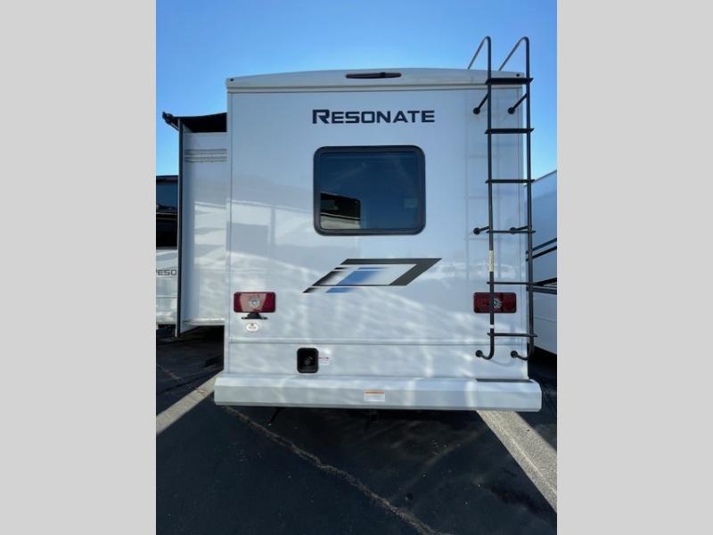 Wherever you decide to roam, you will be met with at-home comforts in this Resonate coach! Once you arrive at your destination, the swivel captain's chairs can become a part of the living area, and your guests can relax on the jack-knife sofa or Dream Dinette. The little ones are sure to love the drop-down overhead bunk, and there is a 40" LED Smart TV in the living area to enjoy a movie together. Within the spacious kitchen you'll find a 12V DC double door refrigerator, a microwave oven, plus a large single bowl stainless steel sink for easy clean-up, and the mid-coach full bath is easily accessible for everyone. The rear private bedroom will feel just like home with its king bed and 32" LED Smart TV, plus there is a dresser and a closet to keep your clothes wrinkle-free. This model also includes an outdoor kitchen with a refrigerator, a sink, and a 1,000-watt inverter!
