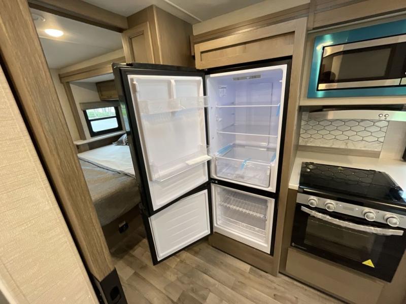Load up your bags and pack up the family for fun trips across the states in this double slide out coach! Your crew can relax under the power awning when you get to the campsite, and there is an exterior kitchen and an exterior TV for the ultimate outdoor living space. If the weather is raining on your parade, just head inside to relax on the jack-knife sofa or play a game at the Dream Dinette! There is a 40" LED Smart TV here to watch a show, and the little ones can take a rest on the drop-down overhead bunk. Once you've worked up an appetite, prepare a meal on the three burner cooktop, or use the microwave oven. You'll also find a 12V DC double door refrigerator here and a pantry for snacks and canned goods. And don't overlook the rear private bedroom with a king bed slide out, a spacious closet and a dresser, plus a 32" bedroom LED Smart TV for movies in bed!