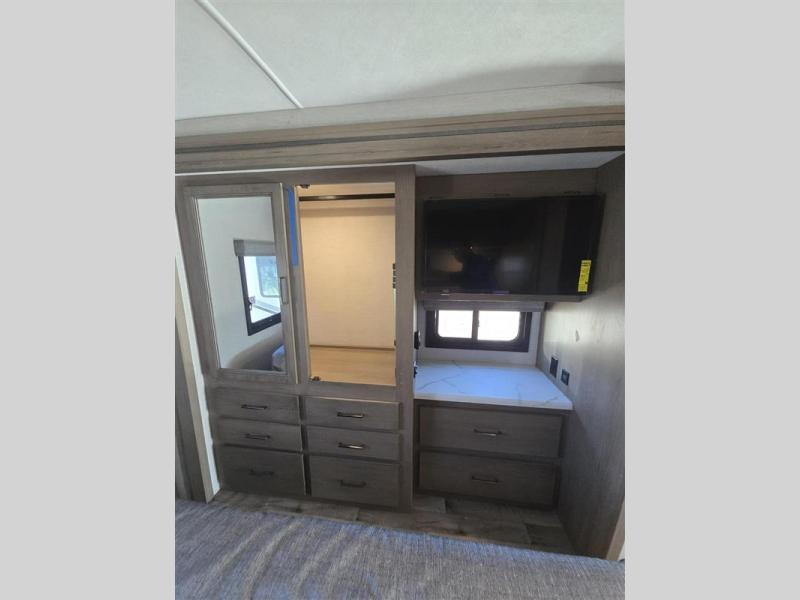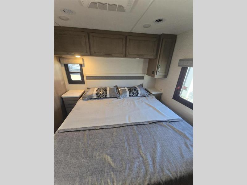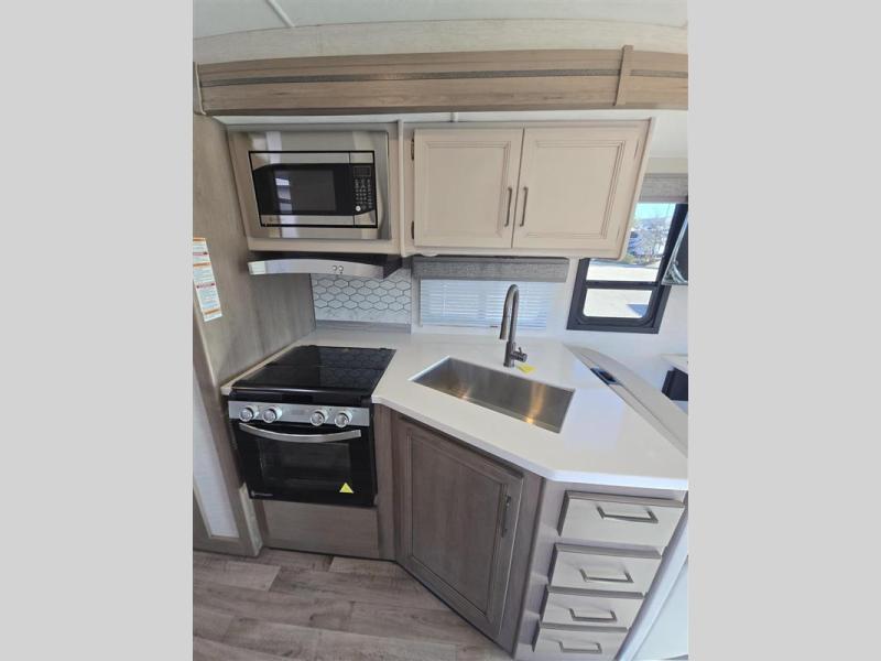 If you're looking for a coach with a larger sleeping capacity and added interior space, you've found it in this Resonate 32B! Once the full-wall slide is extended you can dine at the Dream Dinette or relax on the jack-knife sofa that sits directly across from the 40" LED Smart TV. The little ones will love the drop-down overhead bunk and bunk beds, plus the full bath is right across the bunks for easy nighttime use. You will have the rear private bedroom all to yourselves with a king bed and your own 32" LED Smart TV, and any other guests can sleep on the living area furniture. In the morning you can whip up a hearty breakfast on the three burner cooktop, or use the microwave oven for instant oatmeal if you're on the go. You can spend your day hiking or swimming, or you may just want to visit under the 19' power awning with LED lights and watch the game on the exterior 32" TV!