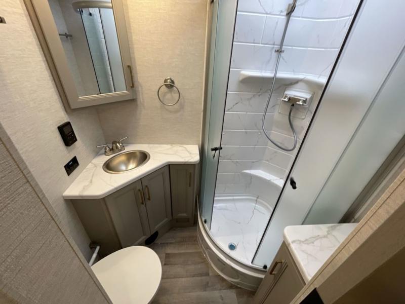 If you're looking for a coach with a larger sleeping capacity and added interior space, you've found it in this Resonate 32B! Once the full-wall slide is extended you can dine at the Dream Dinette or relax on the jack-knife sofa that sits directly across from the 40" LED Smart TV. The little ones will love the drop-down overhead bunk and bunk beds, plus the full bath is right across the bunks for easy nighttime use. You will have the rear private bedroom all to yourselves with a king bed and your own 32" LED Smart TV, and any other guests can sleep on the living area furniture. In the morning you can whip up a hearty breakfast on the three burner cooktop, or use the microwave oven for instant oatmeal if you're on the go. You can spend your day hiking or swimming, or you may just want to visit under the 19' power awning with LED lights and watch the game on the exterior 32" TV!