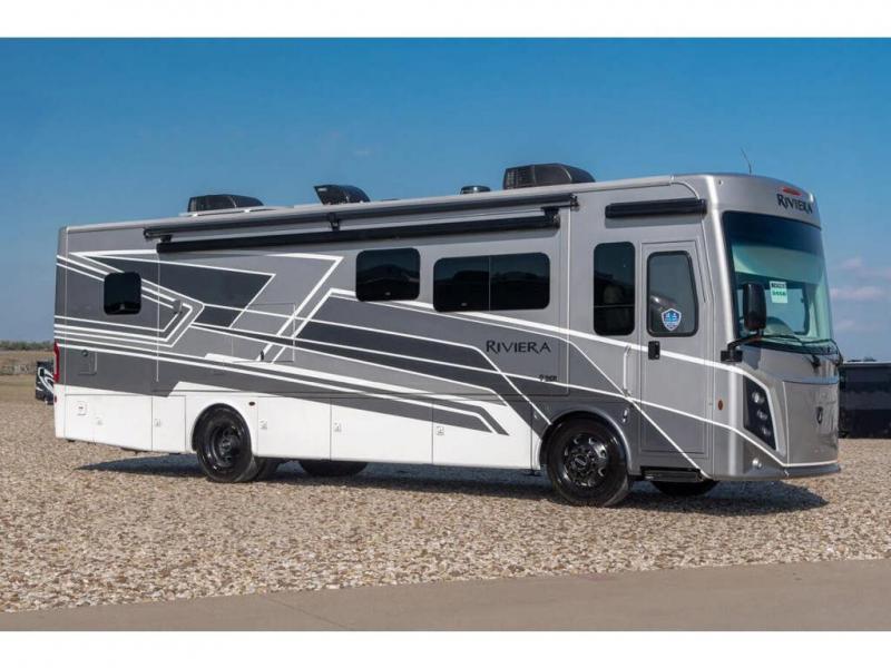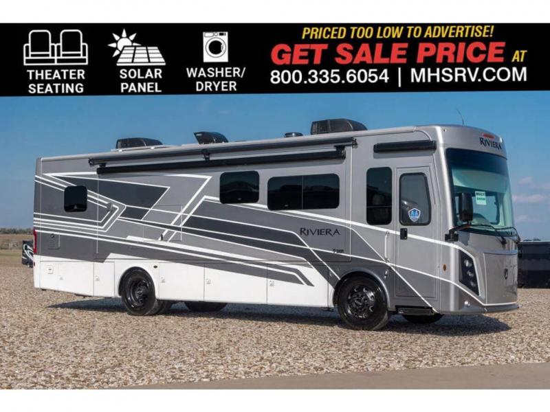 MSRP $399,466. The New 2026 Thor Motor Coach Riviera 34SD Diesel Pusher is approximately 34 feet 11 inches in length and features (3) slide-out rooms, drop down overhead bunk, king size Tilt-A-View inclining bed, residential refrigerator, solid surface counter tops, stack washer/dryer and (2) ducted 15,000 BTU A/Cs, theater seats, Onan Diesel generator, EMS, tankless water heater, enclosed & heated holding tanks, Smart TV’s and more. Options include upgraded interior and 400W additional solar charging system. The Riviera is powered by a Cummins 340HP diesel engine, Freightliner XC-S chassis, Allison automatic transmission Air-Ride suspension and features automatic leveling jacks with touch pad controls, touchscreen dash radio with GPS, luxury vinyl tile floors and much more. **Unit Not California CARB Compliant and Cannot be Registered in California**. Shop a huge selection of diesel pusher motorhomes all at 1 location! Choose from Thor Motor Coach Palazzo – Riviera – Aria – Fleetwood Discovery – Frontier – Holiday Rambler Endeavor – Nautica – Entegra Coach Reatta – Aspire and more. We also buy and sell quality pre-owned models such Newmar Mountain Aire – Dutch Star – New Aire – Ventana – Kountry Star – Northern Star - Allegro Bus – Phaeton – Allegro Red – Byway – Allegro Breeze – Winnebago Journey – Forza – Coachmen Sportscoach – Thor Venetian – Tuscany and much more. Visit MHSRV.com for our complete line-up and the sale prices that have made us the #1 volume selling motor home dealership in the world 12 years in a row! For additional details on this unit and our entire inventory including brochures, window sticker, videos, photos, reviews & testimonials as well as additional information about Motor Home Specialist and our manufacturers please visit us at MHSRV.com or call 800-335-6054. At Motor Home Specialist, we DO NOT charge any prep or orientation fees like you will find at other dealerships. All sale prices include a 200-point inspection, interior & exterior wash, detail service and a fully automated high-pressure rain booth test and coach wash that is a standout service unlike that of any other in the industry. You will also receive a thorough coach orientation with an MHSRV technician, a night stay in our delivery park featuring landscaped and covered pads with full hook-ups and much more! Read Thousands upon Thousands of 5-Star Reviews at MHSRV.com and See What They Had to Say About Their Experience at Motor Home Specialist. WHY PAY MORE? WHY SETTLE FOR LESS?