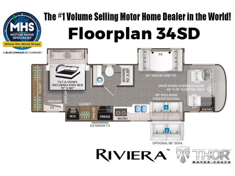Thor Motor Coach Riviera Class A diesel motorhome 34SD highlights: