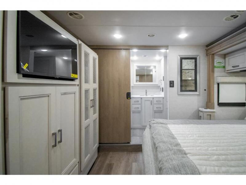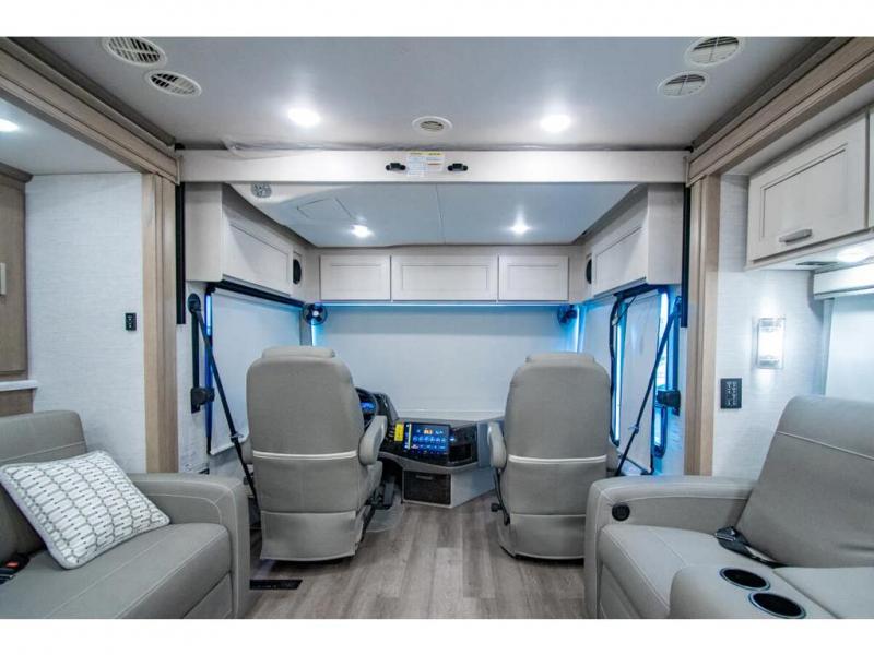 With any Riviera Class A diesel motorhome by Thor Motor Coach, you will enjoy a luxury home on wheels wherever you decide to roam! You will appreciate a capable Freightliner CS-S straight rail chassis with an Atlas foundation and better fuel mileage with the Cummins ISB-XT 6.7L diesel engine. There is a spacious basement pass-through storage for your camp gear, a powered patio awning with LED lighting, and an exterior 40" LED TV for outdoor movie nights. You will be able to enjoy your coach for years to come thanks to the durable construction materials that include a welded tubular steel floor, Vacu-Bond laminated roof, walls, and floor, plus a one-piece domed roof membrane. The elegant interior is designed with luxury vinyl tile flooring, "Wyndham" cabinetry with “Rake” style cabinet doors & nickel finish hardware. Some of the amenities you'll appreciate on each model include the RapidCamp+ multiplex wiring control system, a tankless water heater, and an Onan RV QD 6000 diesel generator. Enjoy your RV life with a Riviera Class A diesel coach!