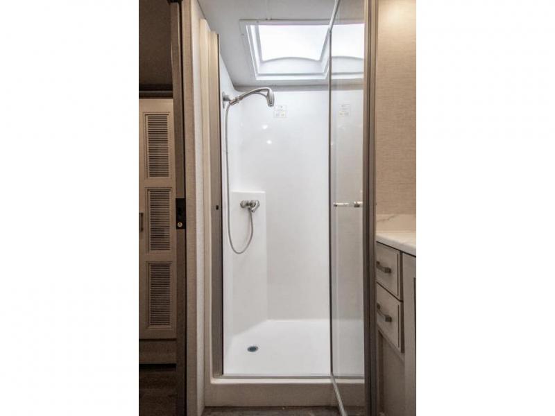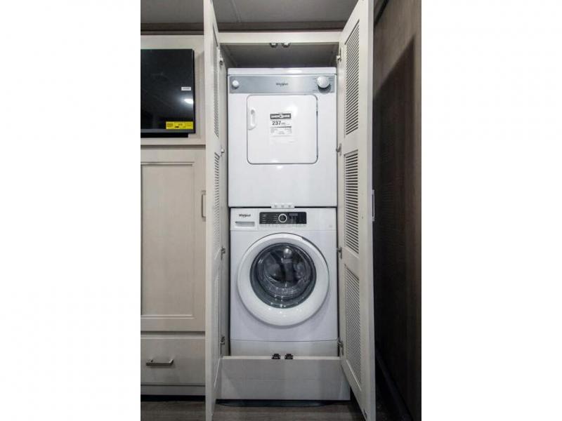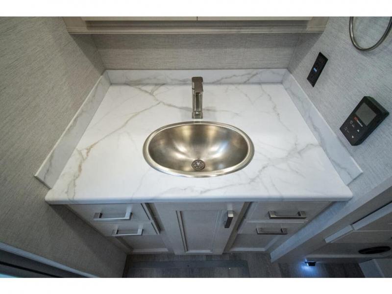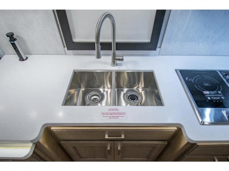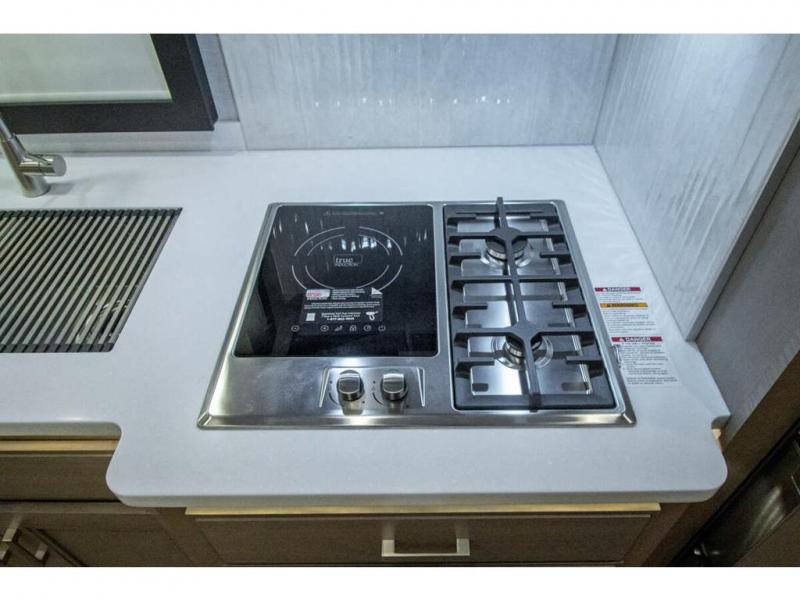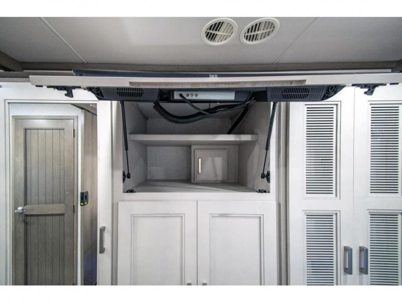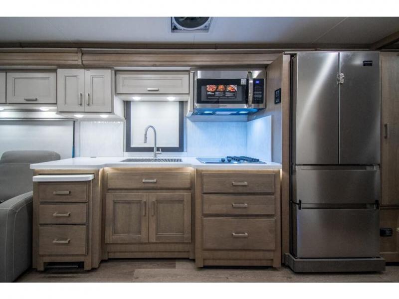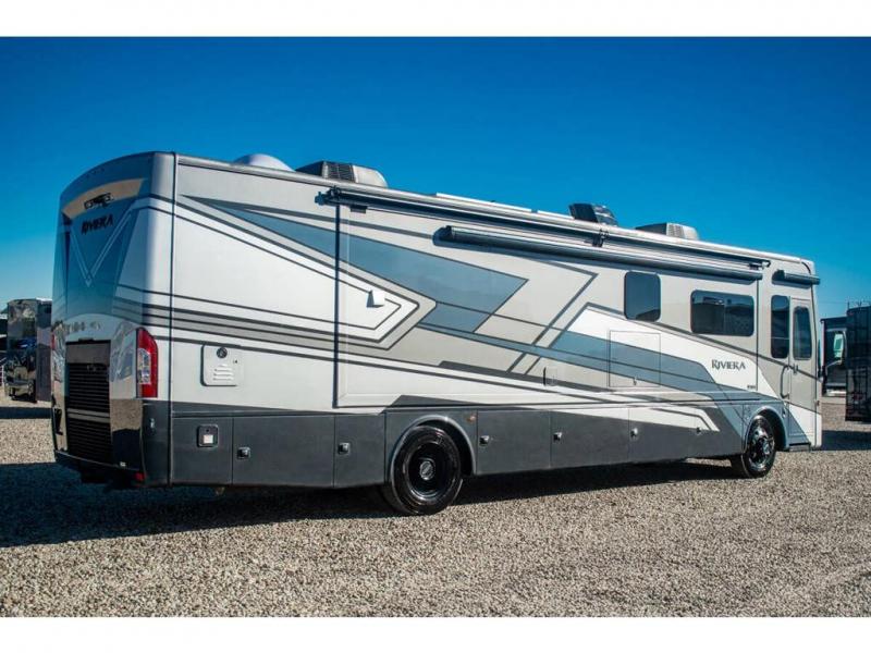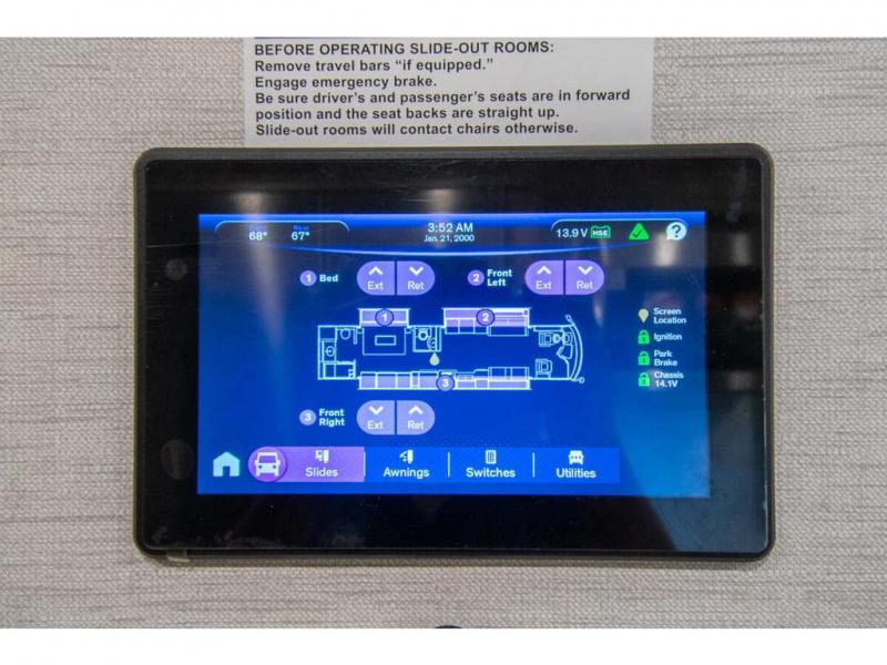 If you're traveling and camping with friends and family, this coach is sure to come in handy with its triple slides and a bath and a half! Once you arrive at the campsite, set up the 20' power lateral arm awning with LED lights, unpack your gear from the pass-through storage, and watch the game with the exterior 40" LED TV. If you'd rather enjoy some time inside, you'll find the 68" theater seating across from the 50" TV to be accommodating, plus there is a 68" sofa and a 72" Dream Dinette for more seating space! This Riviera kitchen includes a pull-out countertop for more prep space, a two burner electric induction cooktop, plus a pantry and a 15.7 cu. ft. French Door residential refrigerator for food storage! When you're ready to turn in for the night you'll enjoy the Tilt-A-View inclining king bed across from a 32" LED Smart TV, and the full rear bath with ample space to get ready for bed!