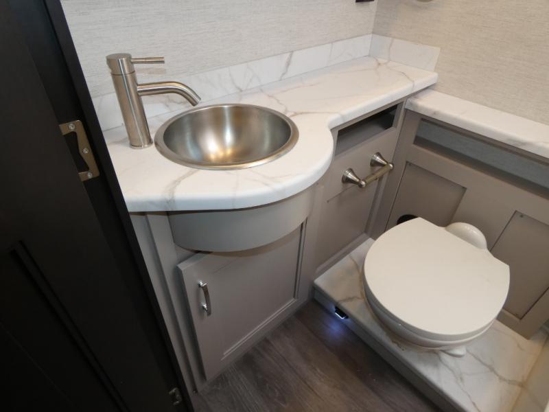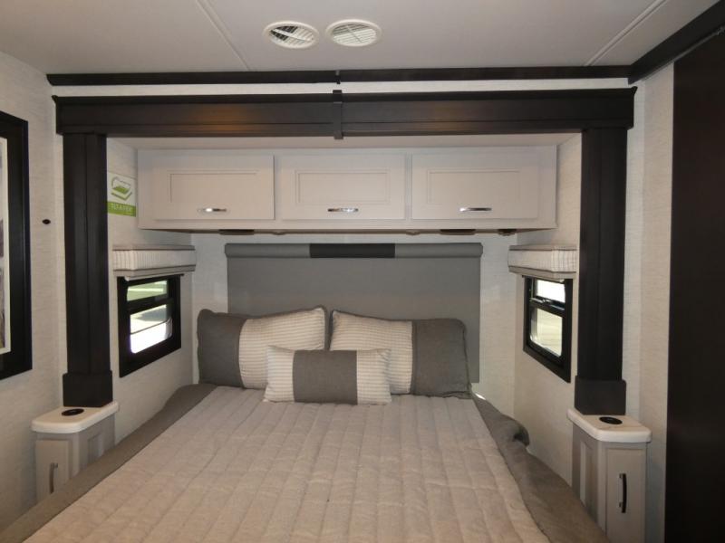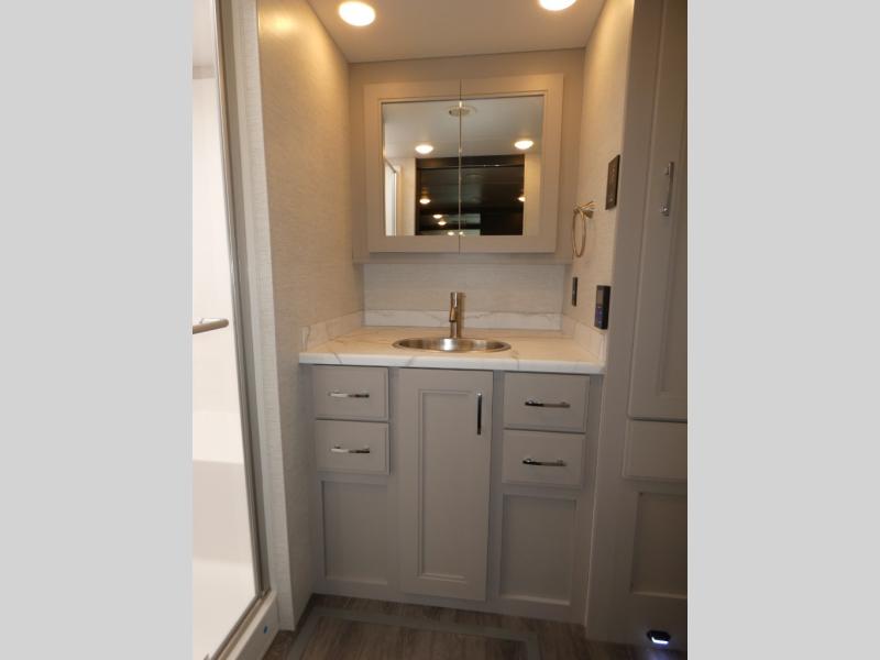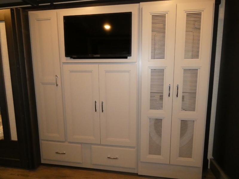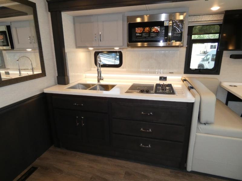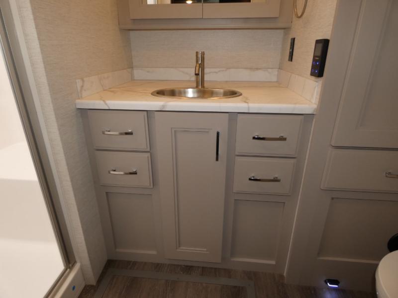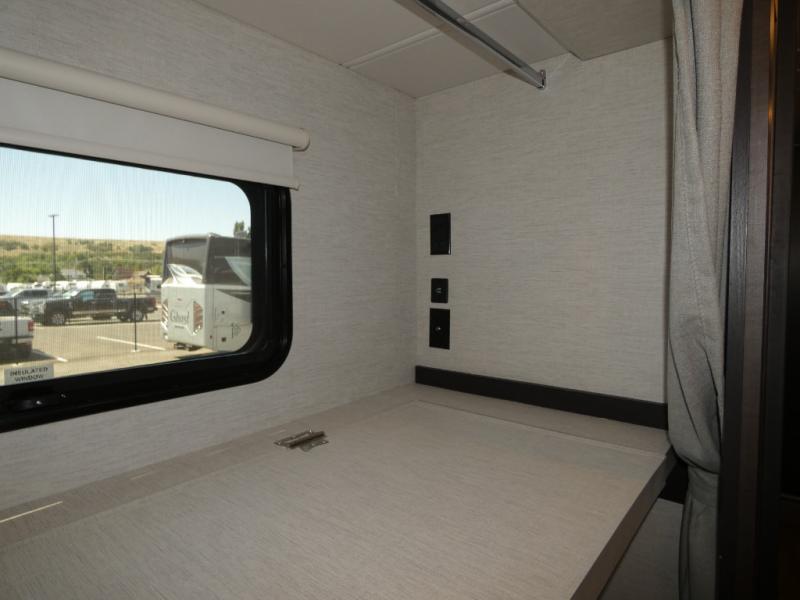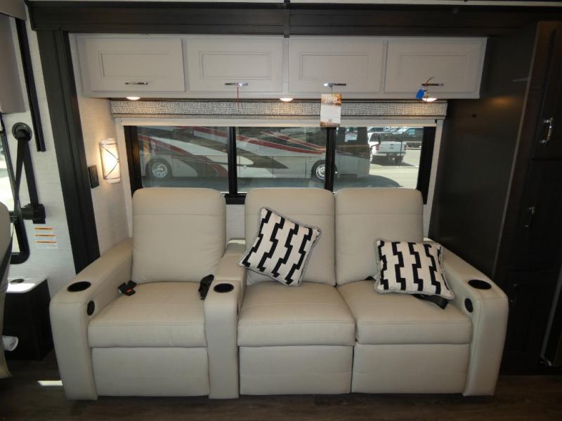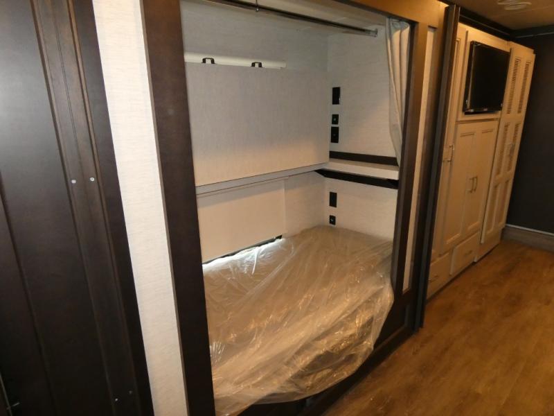 This coach can fit your whole crew thanks to the added bunk beds within the full-wall slide! There is also a drop-down overhead bunk, a Tilt-A-View inclining queen bed, a 72" Dream Dinette, and theater sofa for even more sleeping space! A full rear bath on board will let you clean up each morning, and there is a second full bath across from the bunks for your guests; how convenient! Head to the kitchen to prepare breakfast on the two burner electric induction cooktop or in the stainless steel over-the-range convection microwave, and there is a 19 cu. ft. side-by-side residential refrigerator where the milk and eggs can go back in. After a day outdoors relaxing under the 20' power awning and watching the game on the exterior 40" LED TV, you can head indoors to play a game at the Dream Dinette or get cozy with a book on the sofa!