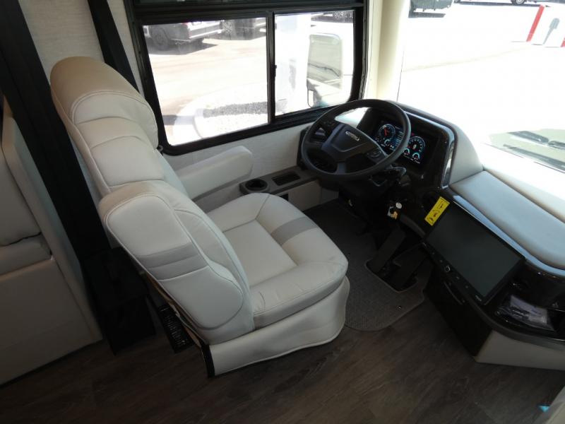 With any Riviera Class A diesel motorhome by Thor Motor Coach, you will enjoy a luxury home on wheels wherever you decide to roam! You will appreciate a capable Freightliner CS-S straight rail chassis with an Atlas foundation and better fuel mileage with the Cummins ISB-XT 6.7L diesel engine. There is a spacious basement pass-through storage for your camp gear, a powered patio awning with LED lighting, and an exterior 40" LED TV for outdoor movie nights. You will be able to enjoy your coach for years to come thanks to the durable construction materials that include a welded tubular steel floor, Vacu-Bond laminated roof, walls, and floor, plus a one-piece domed roof membrane. The elegant interior is designed with luxury vinyl tile flooring, "Studio Collection" cabinetry, solid surface countertops, and designer backsplash in the kitchen. Some of the amenities you'll appreciate on each model include the RapidCamp+ multiplex wiring control system, a tankless water heater, and an Onan RV QD 6000 diesel generator. Enjoy your RV life with a Riviera Class A diesel coach!