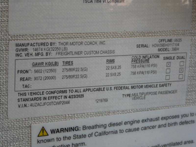 New 2026 Thor Motor Coach Riviera 39BH Motor Home Class A - Diesel
