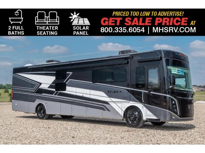 MSRP $399,466. The New 2026 Thor Motor Coach Riviera 39BH Diesel Pusher is approximately 39 feet 9 inches in length and features (3) slide-out rooms, bunk beds, 2 full bath, drop down overhead bunk, residential refrigerator, solid surface counter tops, stack washer/dryer and (2) ducted 15,000 BTU A/Cs, theater seats, Onan Diesel generator, EMS, tankless water heater, enclosed & heated holding tanks, Smart TV’s and more. Options include 400W additional solar charging system and triple theater seats. The Riviera is powered by a Cummins 340HP diesel engine, Freightliner XC-S chassis, Allison automatic transmission Air-Ride suspension and features automatic leveling jacks with touch pad controls, touchscreen dash radio with GPS, luxury vinyl tile floors and much more. **Unit Not California CARB Compliant and Cannot be Registered in California**. Shop a huge selection of diesel pusher motorhomes all at 1 location! Choose from Thor Motor Coach Palazzo – Riviera – Aria – Fleetwood Discovery – Frontier – Holiday Rambler Endeavor – Nautica – Entegra Coach Reatta – Aspire and more. We also buy and sell quality pre-owned models such Newmar Mountain Aire – Dutch Star – New Aire – Ventana – Kountry Star – Northern Star - Allegro Bus – Phaeton – Allegro Red – Byway – Allegro Breeze – Winnebago Journey – Forza – Coachmen Sportscoach – Thor Venetian – Tuscany and much more. Visit MHSRV.com for our complete line-up and the sale prices that have made us the #1 volume selling motor home dealership in the world 12 years in a row! For additional details on this unit and our entire inventory including brochures, window sticker, videos, photos, reviews & testimonials as well as additional information about Motor Home Specialist and our manufacturers please visit us at MHSRV.com or call 800-335-6054. At Motor Home Specialist, we DO NOT charge any prep or orientation fees like you will find at other dealerships. All sale prices include a 200-point inspection, interior & exterior wash, detail service and a fully automated high-pressure rain booth test and coach wash that is a standout service unlike that of any other in the industry. You will also receive a thorough coach orientation with an MHSRV technician, a night stay in our delivery park featuring landscaped and covered pads with full hook-ups and much more! Read Thousands upon Thousands of 5-Star Reviews at MHSRV.com and See What They Had to Say About Their Experience at Motor Home Specialist. WHY PAY MORE? WHY SETTLE FOR LESS?