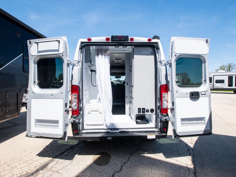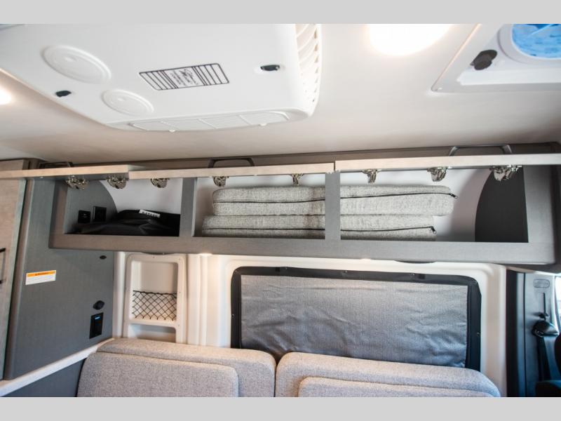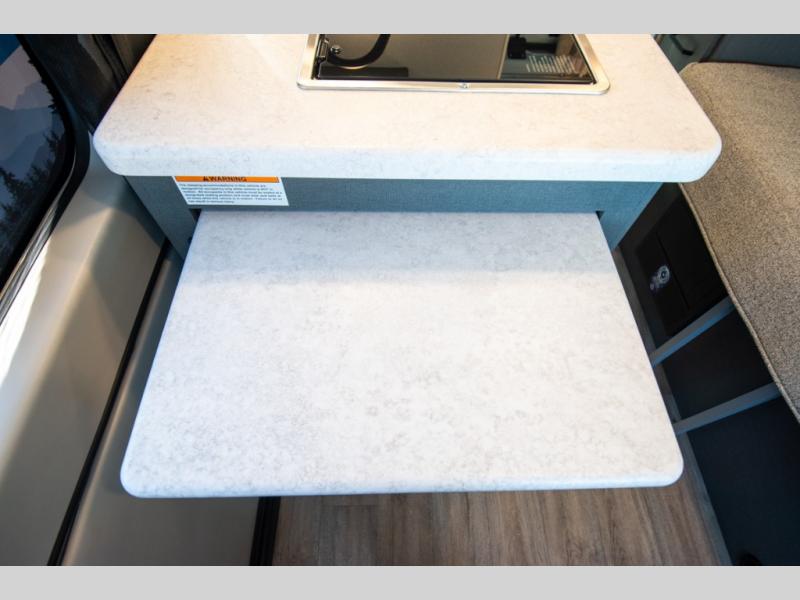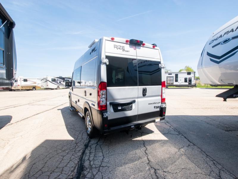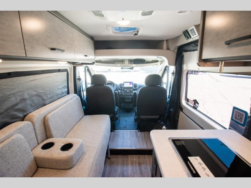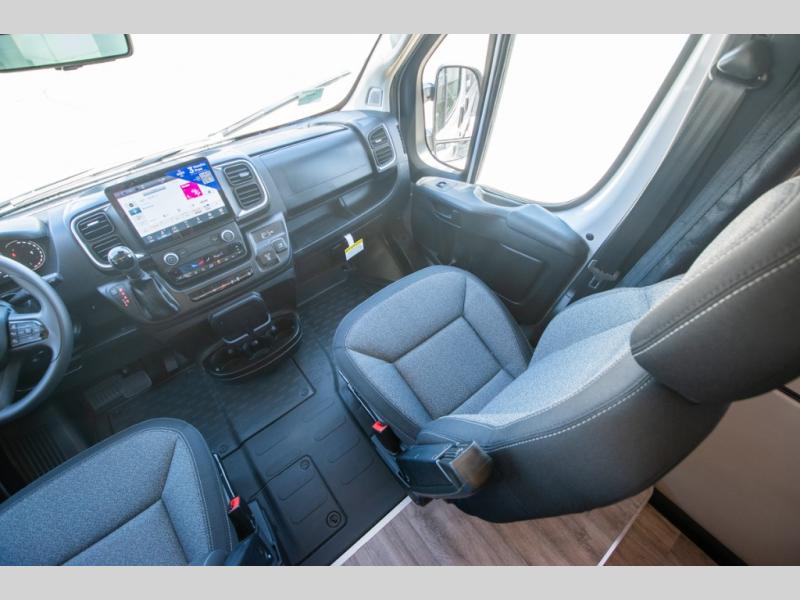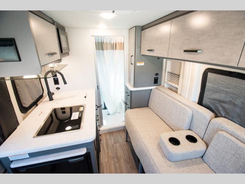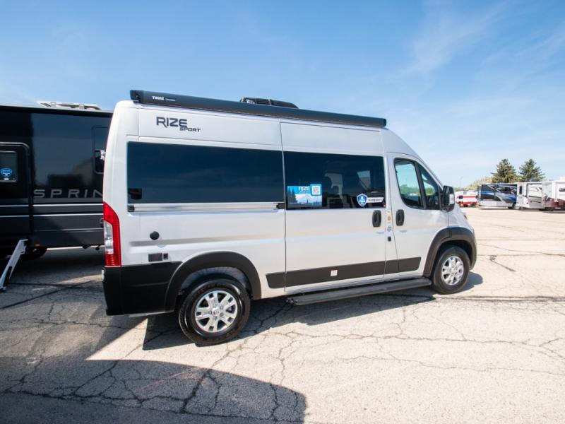 The Rize Class B gas motorhome by Thor Motor Coach allows you to experience the camping lifestyle in a compact RV packed with convenient features. There is a 3.6L Pentastar V6 engine and 276 HP to power your excursions, and the outdoor enthusiast will love the 200W solar panel and solar charge controller. Each model includes residential vinyl flooring, TechnoForm Euro-style upper cabinet doors, and premium window privacy shades. You'll find pressed countertops in the kitchen and a glass protective cover and task lighting above the cooktop to easily cook meals each day. The keyless entry system adds to the convenience found throughout these models, plus there is an exterior LP connection if you want to hook up your own grill and a rear water sprayer to wash off your hiking boots.
