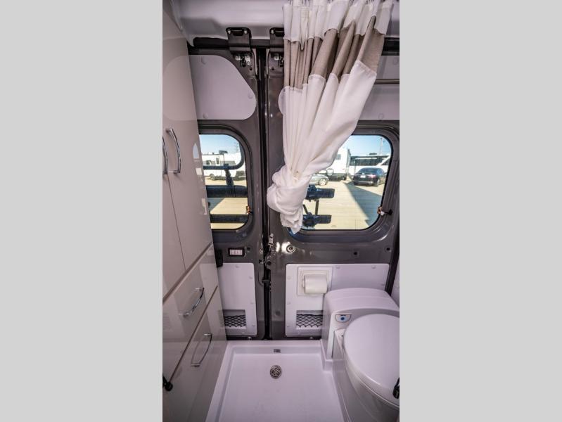The Rize Class B gas motorhome by Thor Motor Coach allows you to experience the camping lifestyle in a compact RV packed with convenient features. There is a 3.6L Pentastar V6 engine and 276 HP to power your excursions, and the outdoor enthusiast will love the exterior sprayer. Each model includes residential vinyl flooring, Welformed interior wall panels, Euro-style upper cabinet doors, and cassette shades. You'll find solid surface countertops in the kitchen and a glass protective cover and task lighting above the cooktop to easily cook meals each day. The keyless entry system adds to the convenience found throughout these models, plus there is an exterior LP connection if you want to hook up your own grill!