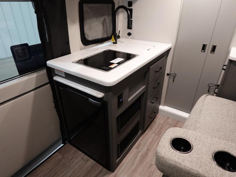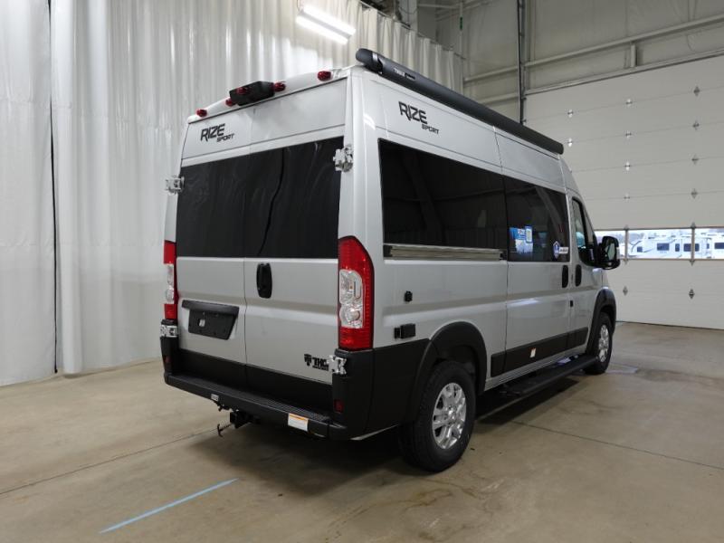 The Rize Sport Class B gas motorhome by Thor Motor Coach allows you to experience the camping lifestyle in a compact RV packed with convenient features. There is a 3.6L Pentastar V6 engine and 276 HP to power your excursions, and the outdoor enthusiast will love the exterior sprayer. Each model includes residential vinyl flooring, Welformed interior wall panels, and slap style cabinet doors, and cassette shades. You'll find pressed countertops in the kitchen and a glass protective cover and task lighting above the cooktop to easily cook meals each day. The keyless entry system adds to the convenience found throughout these models, plus there is an exterior LP connection if you want to hook up your own grill!