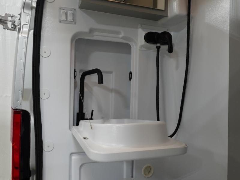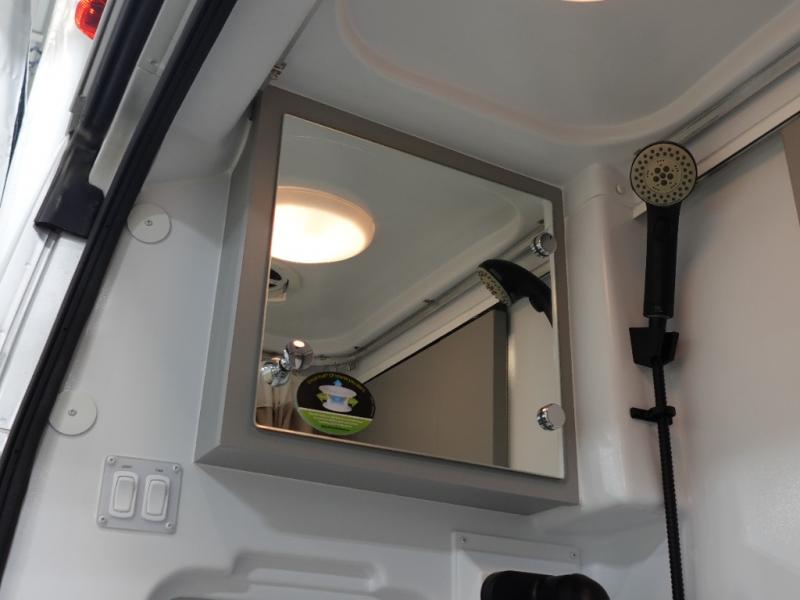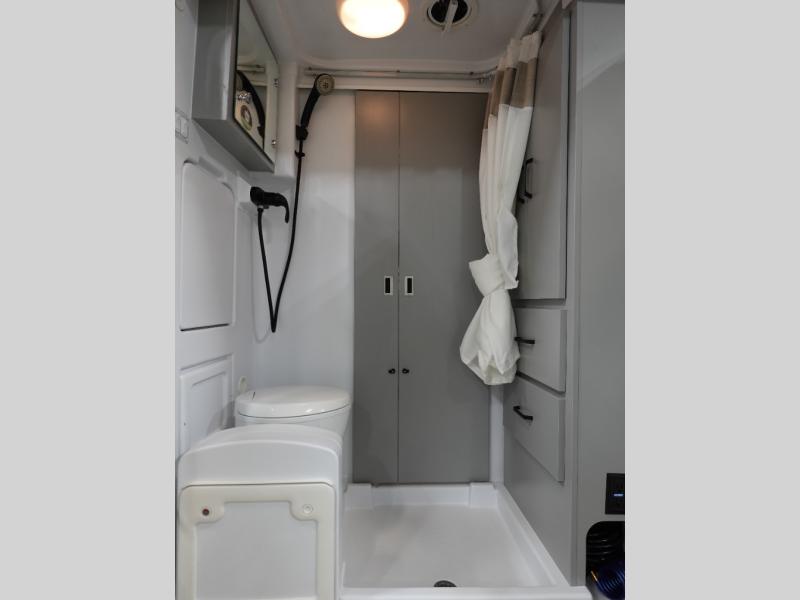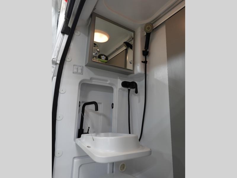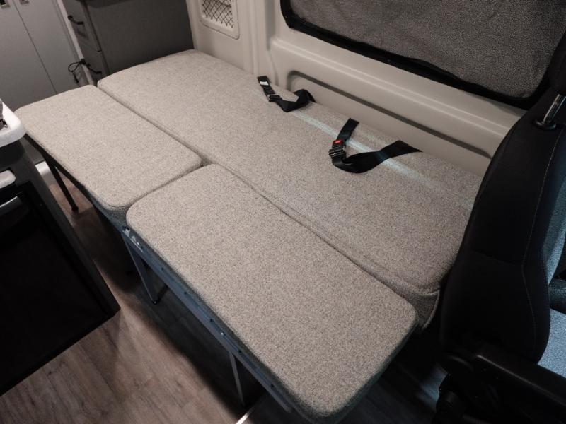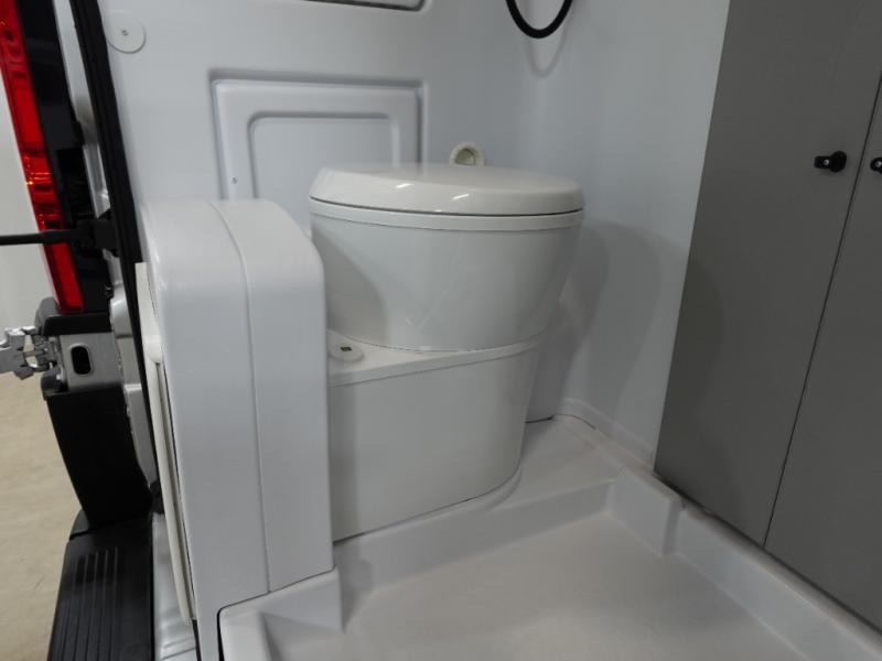 This coach is the perfect home on wheels for all your adventures. You will have everything you need, including a wet bath with a cassette toilet and pocket doors to save space. Once you have prepared breakfast on the two-burner gas cooktop, you can dine on the sofa with a removable table. This area can then be your sleeping space at night since the sofa converts into a 72" x 47" pull-out bed. Whether you're enjoying the fresh air let in by the large opening side windows, or you're sipping on a cold drink outside, you will love everything about this coach!