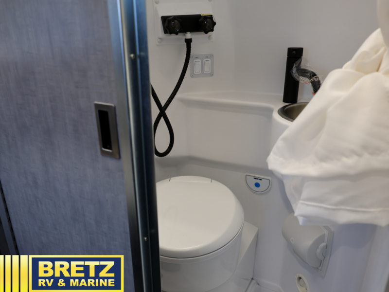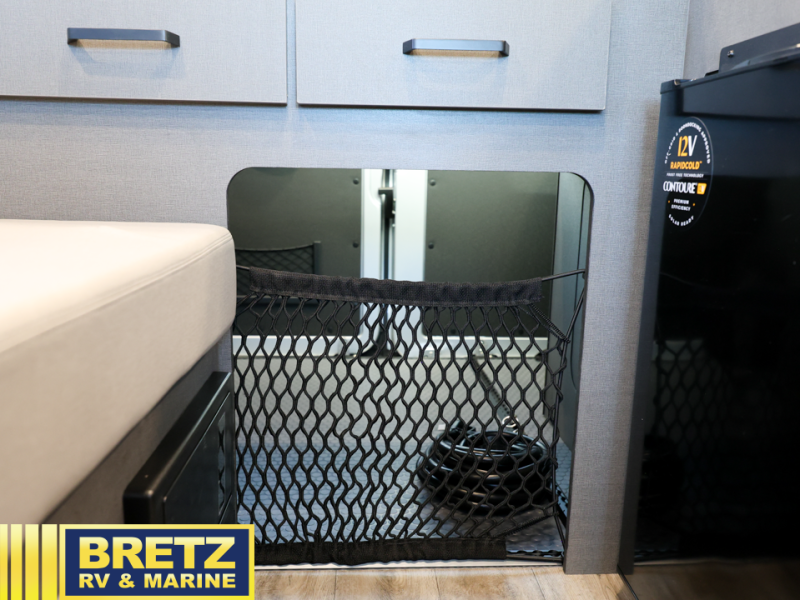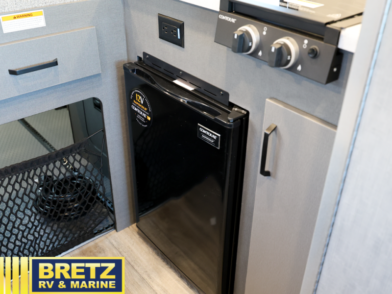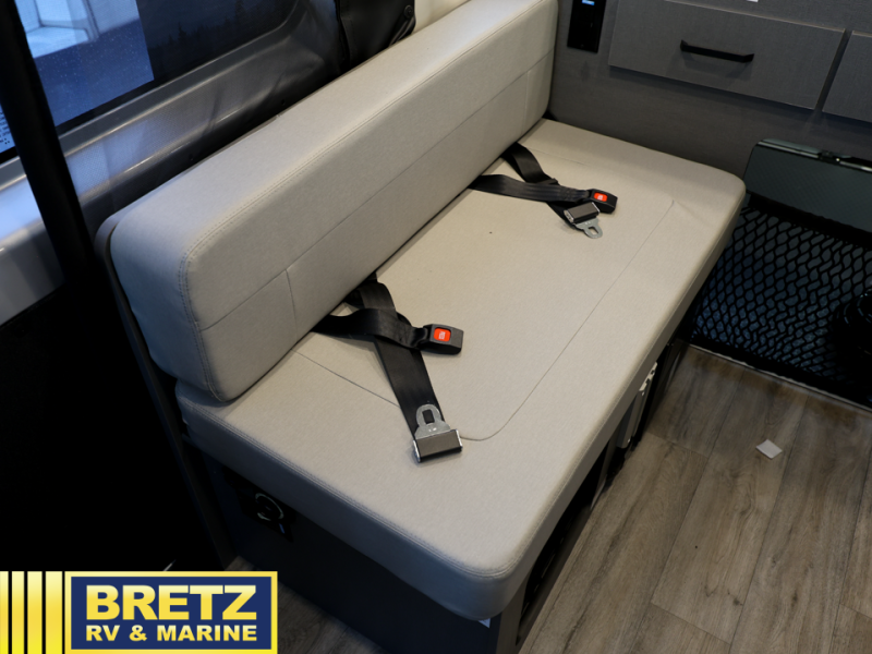 This versatile coach lets you explore the open road in comfort. Once you stop for the day, you can make lunch on the two-burner gas cooktop or in the overhead microwave oven. There is also a 12V electric refrigerator for food storage plus a side seat with two seatbelts and a removable lagun table to dine at. The convenient wet bath will let you freshen up before bed, and speaking of bed, you'll find a flip-up bed in the back with a mega storage area below for camp gear, personal belongings and more!