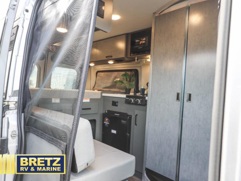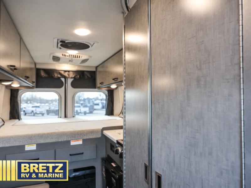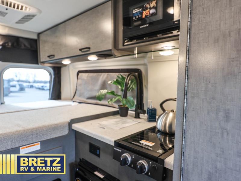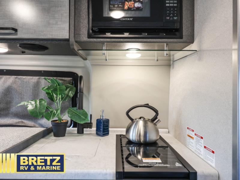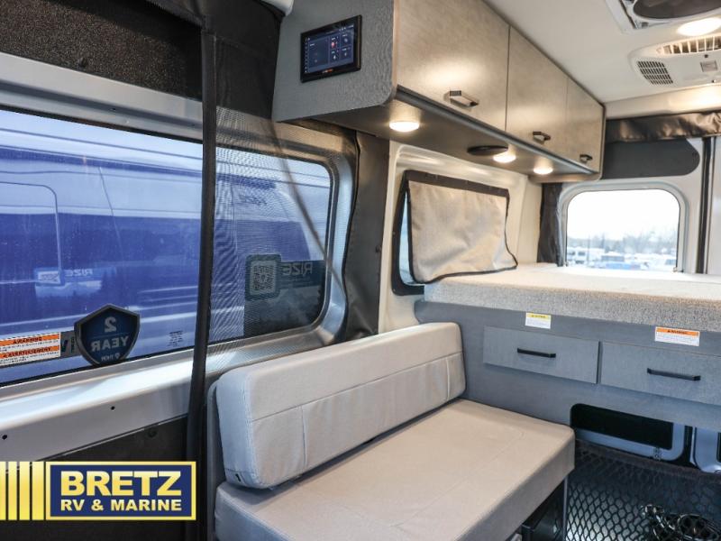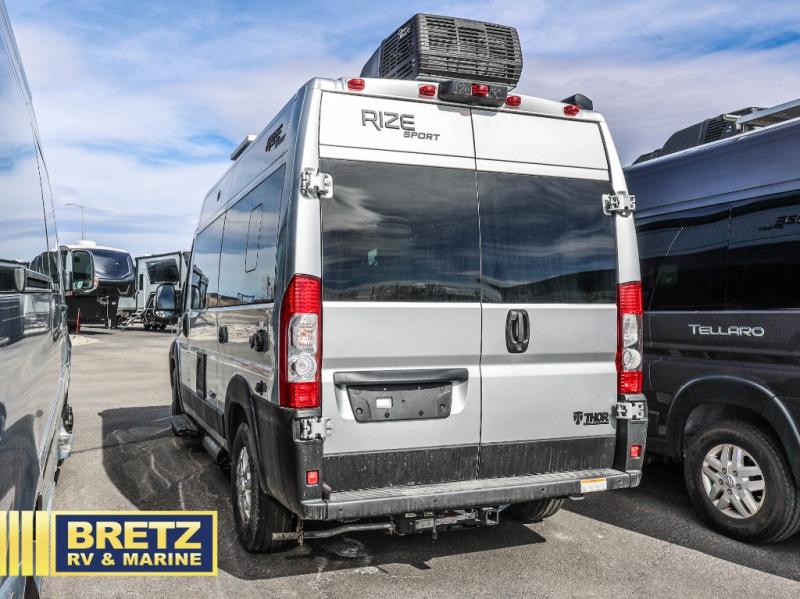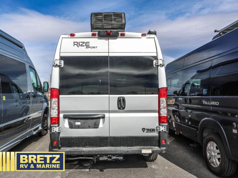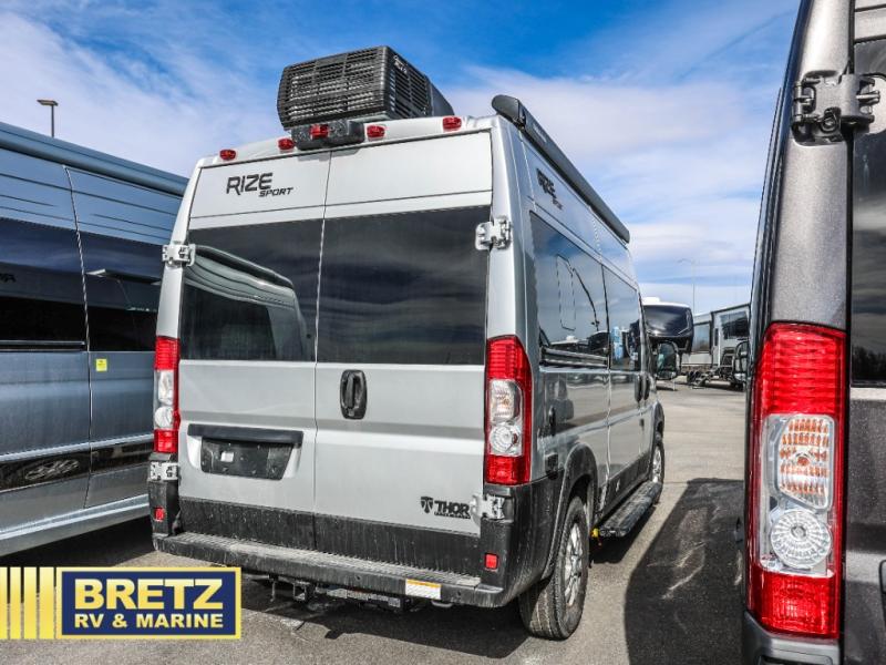 The Rize Sport Class B gas motorhome by Thor Motor Coach allows you to experience the camping lifestyle in a compact RV packed with convenient features. There is a 3.6L Pentastar V6 engine and 276 HP to power your excursions, and the outdoor enthusiast will love the exterior sprayer. Each model includes residential vinyl flooring, Welformed interior wall panels, and flat panel style cabinet doors, and cassette shades. You'll find pressed countertops in the kitchen and a glass protective cover and task lighting above the cooktop to easily cook meals each day. The keyless entry system adds to the convenience found throughout these models, plus there is an exterior LP connection if you want to hook up your own grill!
