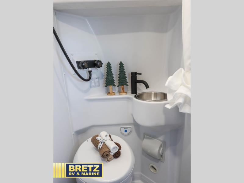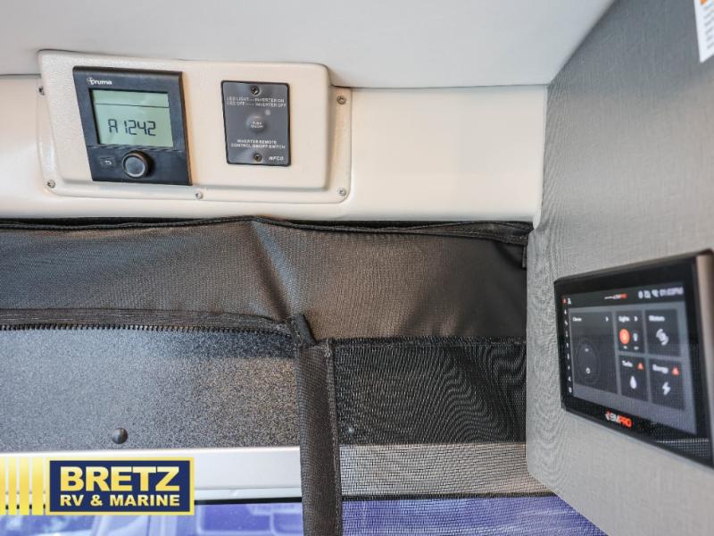 This versatile coach lets you explore the open road in comfort. Once you stop for the day, you can make lunch on the two-burner gas cooktop or in the overhead microwave oven. There is also a 12V electric refrigerator for food storage plus a side seat with two seatbelts and a removable lagun table to dine at. The convenient wet bath will let you freshen up before bed, and speaking of bed, you'll find a flip-up bed in the back with a mega storage area below for camp gear, personal belongings and more!