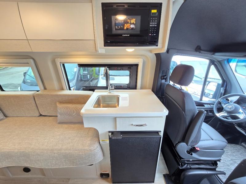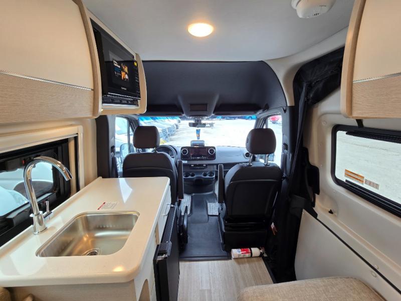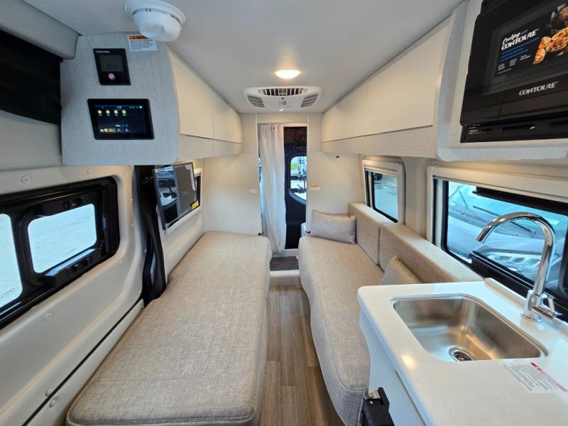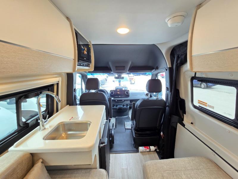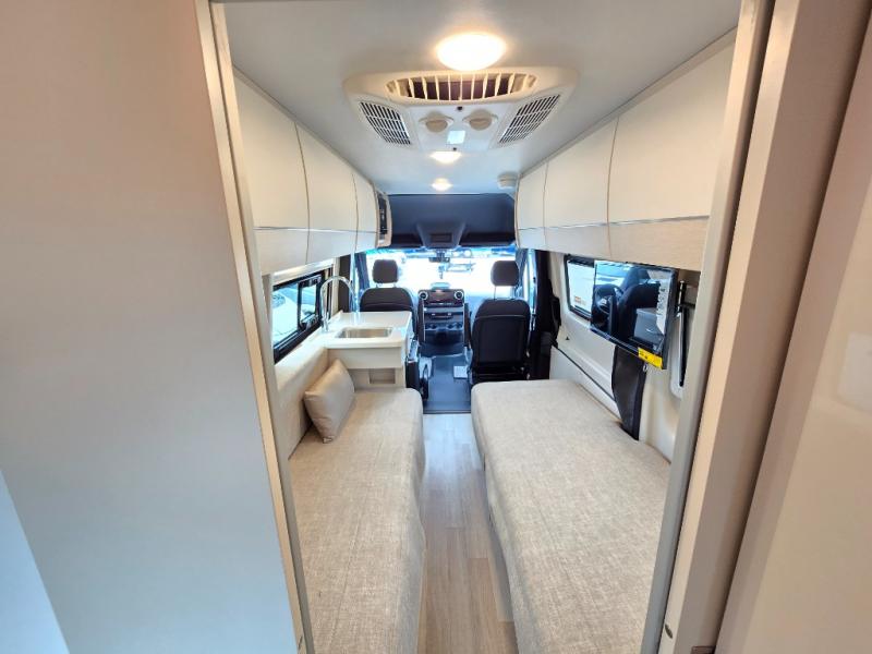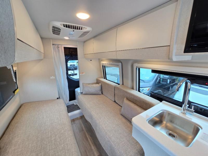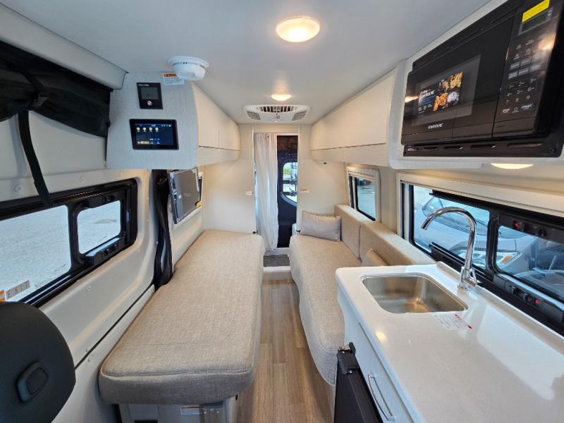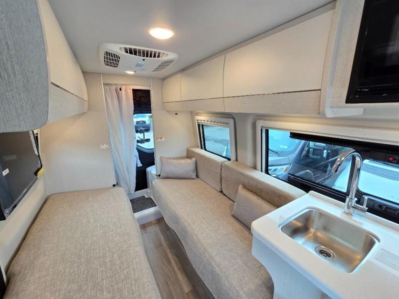 With any Sanctuary Class B diesel motorhome, you can explore off-grid thanks to the solar charging system which includes a 200-watt solar panel and charge controller to keep your house batteries full without overcharging. The Winegard ConnecT 2.0 works as your WiFi extender, 4G hotspot, and TV antenna in case you need to stay connected, plus each model is HS/DDS satellite and cable TV ready if you want to add entertainment. Each is built on a Mercedes Sprinter 2500 or 3500 all-wheel drive chassis, depending on the model you chose, and you'll appreciate the 5,000 lb. trailer hitch for your towing needs. Inside, you'll enjoy light weight cabinetry, cassette shades, black out window coverings, and Euro-style upper cabinet doors for a more modern look.