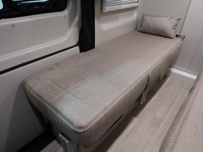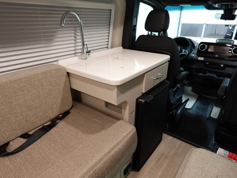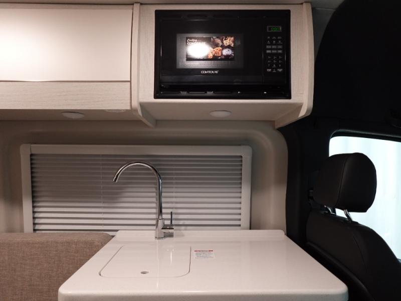 With any Sanctuary Class B diesel motorhome, you can explore off-grid thanks to the solar charging system which includes a 200-watt solar panel and charge controller to keep your house batteries full without overcharging. The Winegard ConnecT 2.0 works as your WiFi extender, 4G hotspot, and TV antenna in case you need to stay connected, plus each model is HS/DDS satellite and cable TV ready if you want to add entertainment. Each is built on a Mercedes Sprinter 2500 or 3500 all-wheel drive chassis, depending on the model you chose, and you'll appreciate the 5,000 lb. trailer hitch for your towing needs. Inside, you'll enjoy light weight cabinetry, cassette shades, black out window coverings, and Euro-style upper cabinet doors for a more modern look.