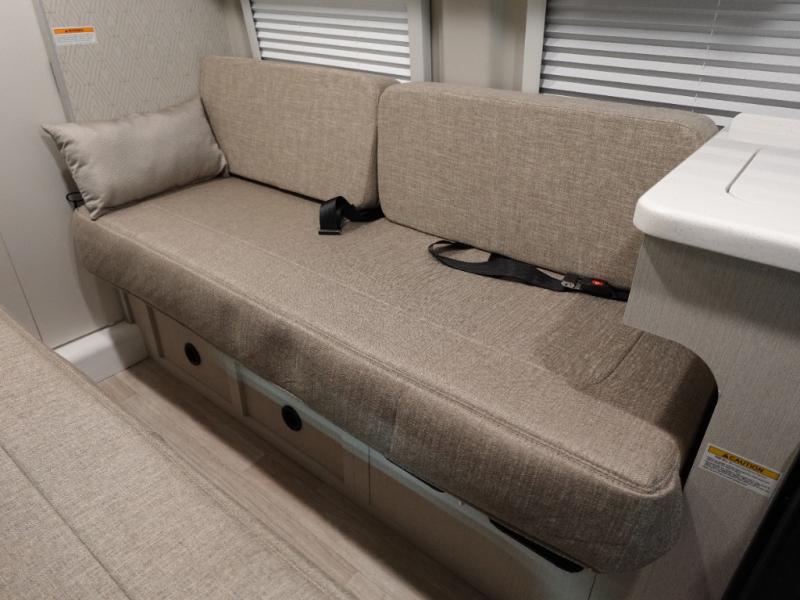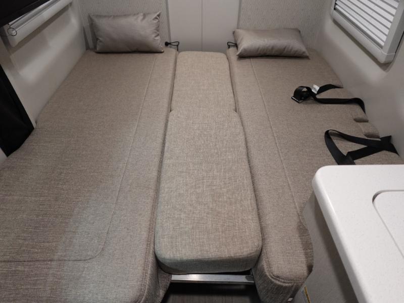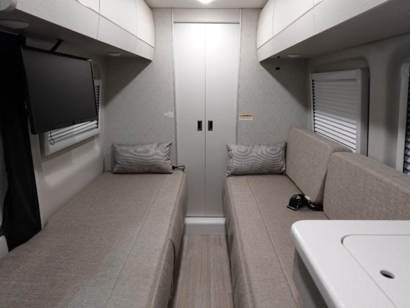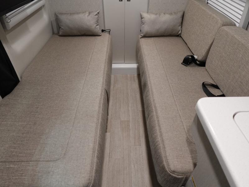 The perfect traveling companion for two who enjoy life on the road. The captain's chairs up front swivel to provide more seating in back, plus you have a 70" x 70" expandable sleeper sofa with a removable table nearby. The single burner induction cooktop allows you to make meals easily when stopped, and there is also a sink for cleaning up and refrigerator as well. You will find a 24" Smart TV in the living area located in front that can be viewed from anywhere in back! A wet bath in the very back allows all travelers to stay clean and fresh during the trip, and there is a wardrobe plus drawers to keep your clothing and personal items neat and tidy while you travel.