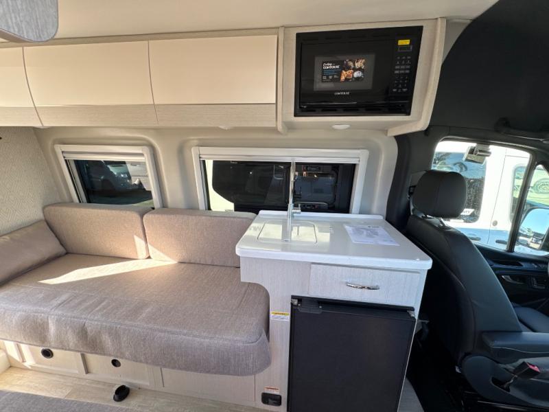 With any Sanctuary Class B diesel motorhome, you can explore off-grid thanks to the solar charging system which includes a 200-watt solar panel and charge controller to keep your house batteries full without overcharging. The Winegard ConnecT 2.0 works as your WiFi extender, 4G hotspot, and TV antenna in case you need to stay connected, plus each model is HS/DDS satellite and cable TV ready if you want to add entertainment. Each is built on a Mercedes Sprinter 2500 or 3500 all-wheel drive chassis, depending on the model you chose, and you'll appreciate the 5,000 lb. trailer hitch for your towing needs. Inside, you'll enjoy light weight cabinetry, cassette shades, black out window coverings, and Euro-style upper cabinet doors for a more modern look.