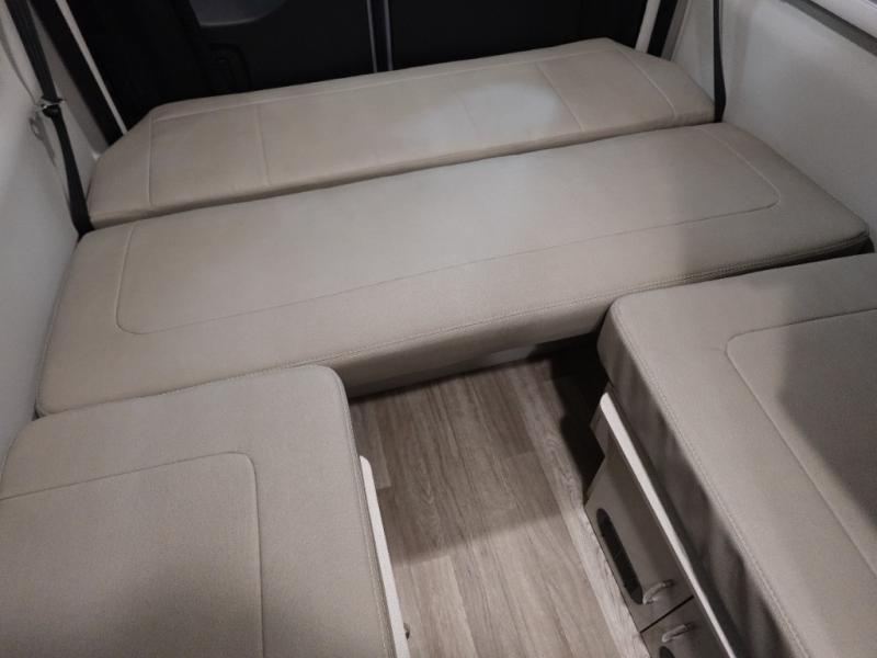 Calling all outdoor enthusiasts to explore the unknown sites in this camper van for two! The captain's chairs swivel for more seating space once at your destination, and the rear sofa folds out to offer a 73" x 70" sleeping space. You can watch TV before bedtime, and get cleaned up in the wet bath. The kitchen area features a single door 12V refrigerator, a microwave oven, plus a solid surface countertop and single bowl sink. For cooking, you will find a single burner induction cooktop. You can even enjoy dining outside using the fold-out exterior table. When traveling the rear sofa offers three sets of seatbelts for safety.