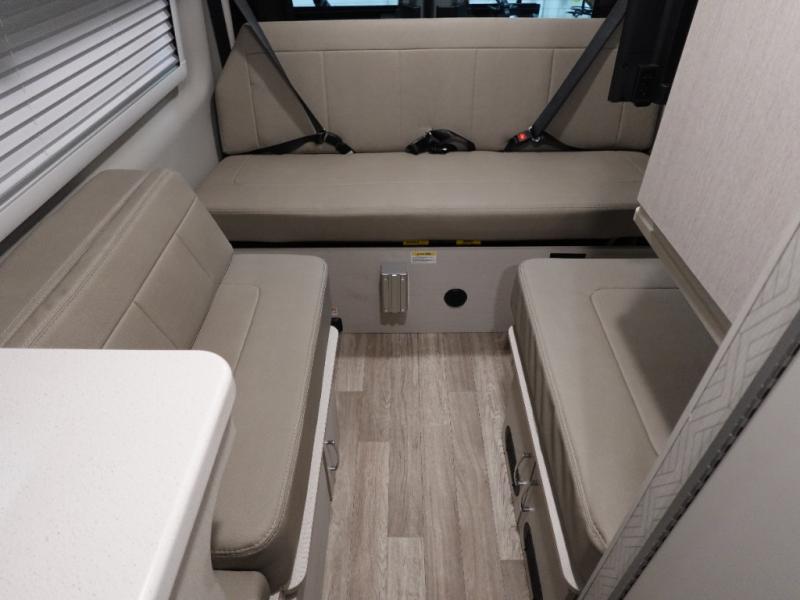 With any Sanctuary Class B diesel motorhome, you can explore off-grid thanks to the solar charging system which includes a 200-watt solar panel and charge controller to keep your house batteries full without overcharging. The Winegard ConnecT 2.0 works as your WiFi extender, 4G hotspot, and TV antenna in case you need to stay connected, plus each model is HS/DDS satellite and cable TV ready if you want to add entertainment. Each is built on a Mercedes Sprinter 2500 or 3500 all-wheel drive chassis, depending on the model you chose, and you'll appreciate the 5,000 lb. trailer hitch for your towing needs. Inside, you'll enjoy light weight cabinetry, cassette shades, black out window coverings, and Euro-style upper cabinet doors for a more modern look.