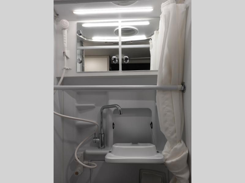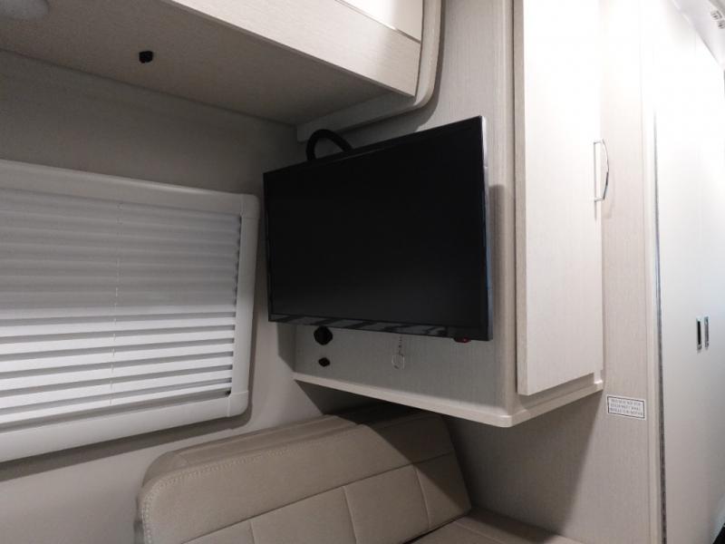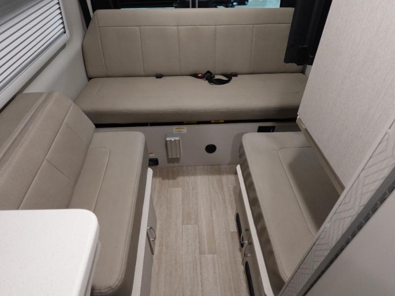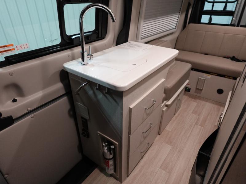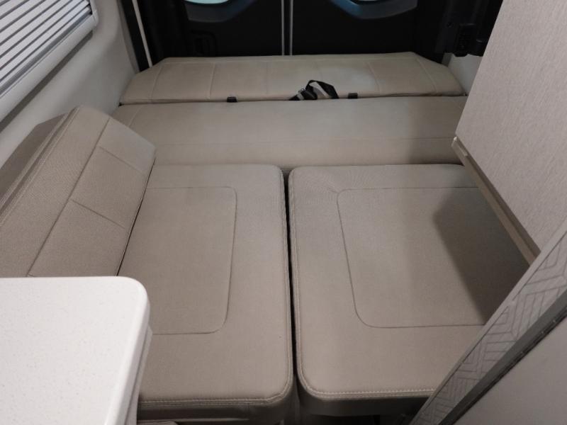 Calling all outdoor enthusiasts to explore the unknown sites in this camper van for two! The captain's chairs swivel for more seating space once at your destination, and the rear sofa folds out to offer a 73" x 70" sleeping space. You can watch TV before bedtime, and get cleaned up in the wet bath. The kitchen area features a single door 12V refrigerator, a microwave oven, plus a solid surface countertop and single bowl sink. For cooking, you will find a single burner induction cooktop. You can even enjoy dining outside using the fold-out exterior table. When traveling the rear sofa offers three sets of seatbelts for safety.