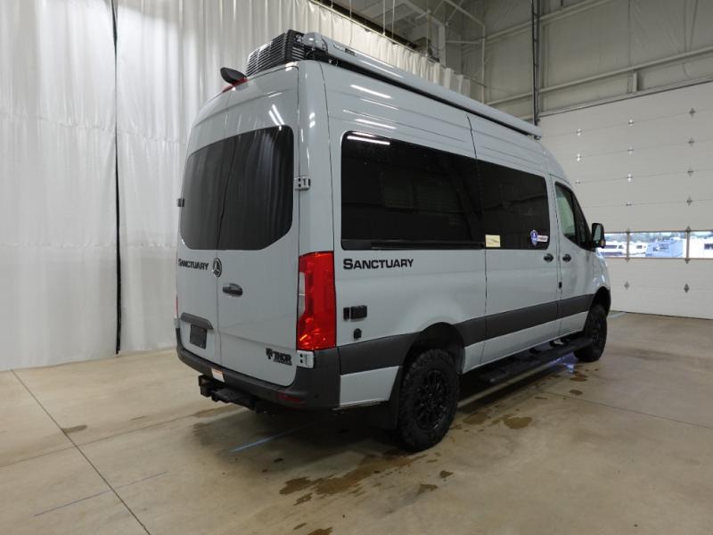 With any Sanctuary Class B diesel motorhome, you can explore off-grid thanks to the solar charging system which includes a 200-watt solar panel and charge controller to keep your house batteries full without overcharging. The Winegard ConnecT 2.0 works as your WiFi extender, 4G hotspot, and TV antenna in case you need to stay connected, plus each model is HS/DDS satellite and cable TV ready if you want to add entertainment. Each is built on a Mercedes Sprinter 2500 or 3500 all-wheel drive chassis, depending on the model you chose, and you'll appreciate the 5,000 lb. trailer hitch for your towing needs. Inside, you'll enjoy light weight cabinetry, cassette shades, black out window coverings, and Euro-style upper cabinet doors for a more modern look.