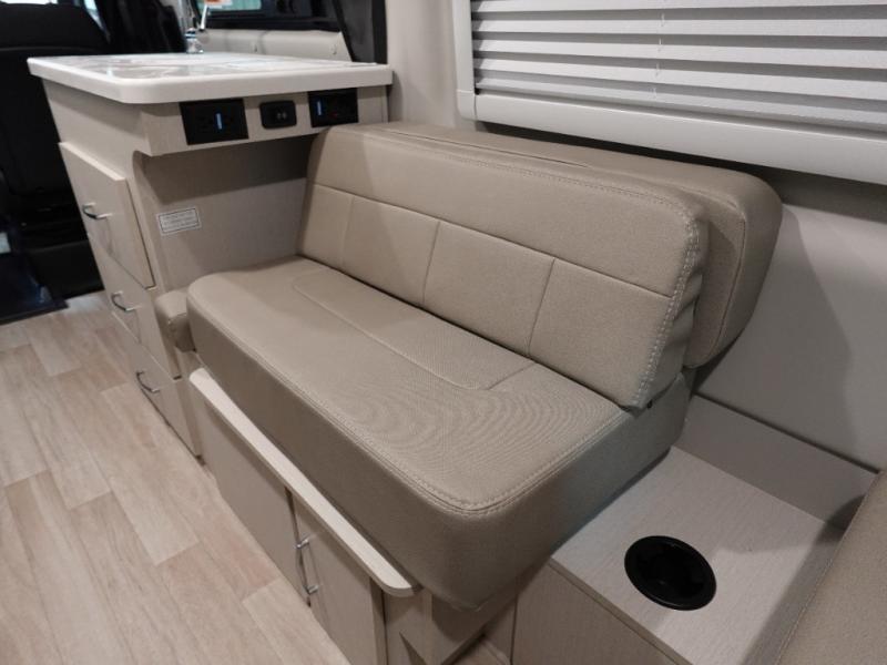 Calling all outdoor enthusiasts to explore the unknown sites in this camper van for two! The captain's chairs swivel for more seating space once at your destination, and the rear sofa folds out to offer a 73" x 70" sleeping space. You can watch TV before bedtime, and get cleaned up in the wet bath. The kitchen area features a single door 12V refrigerator, a microwave oven, plus a solid surface countertop and single bowl sink. For cooking, you will find a single burner induction cooktop. You can even enjoy dining outside using the fold-out exterior table. When traveling the rear sofa offers three sets of seatbelts for safety. There are many more standard features and a few options to choose from, start exploring today!
