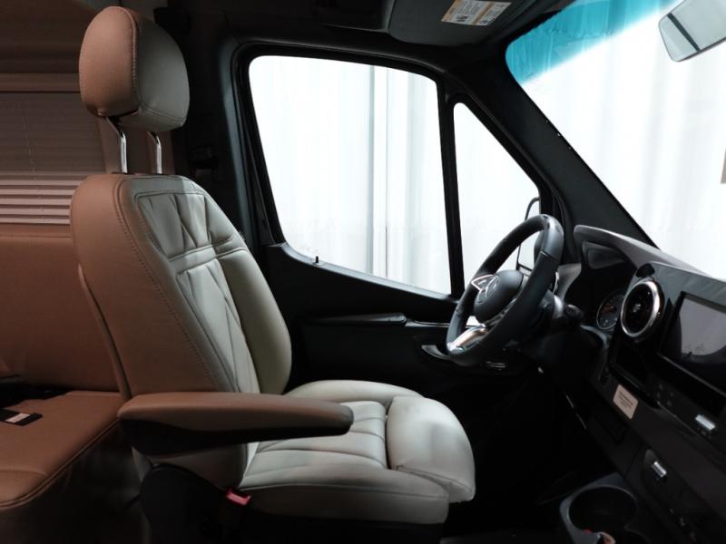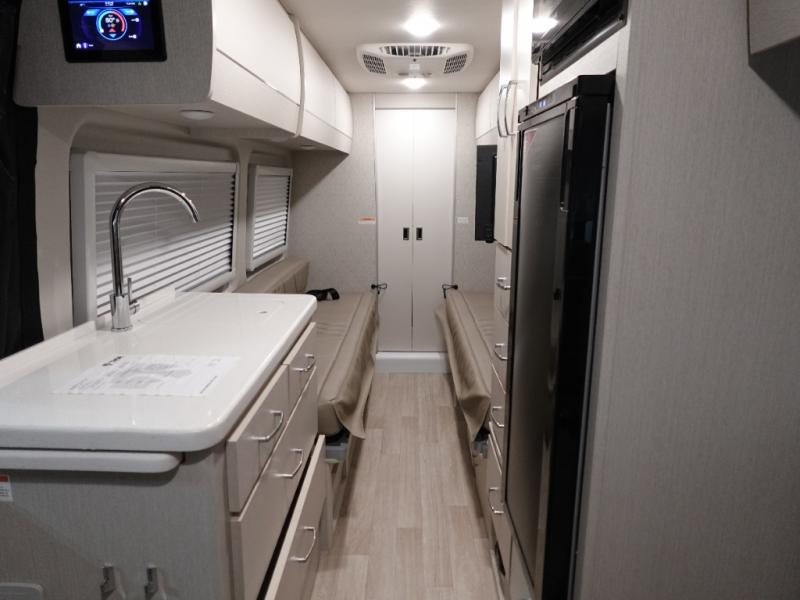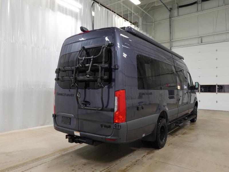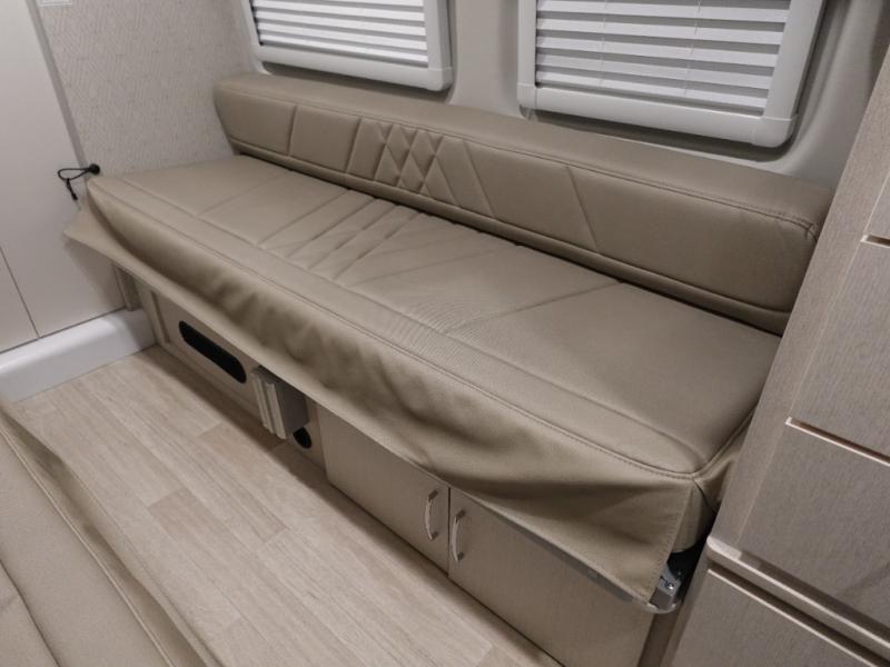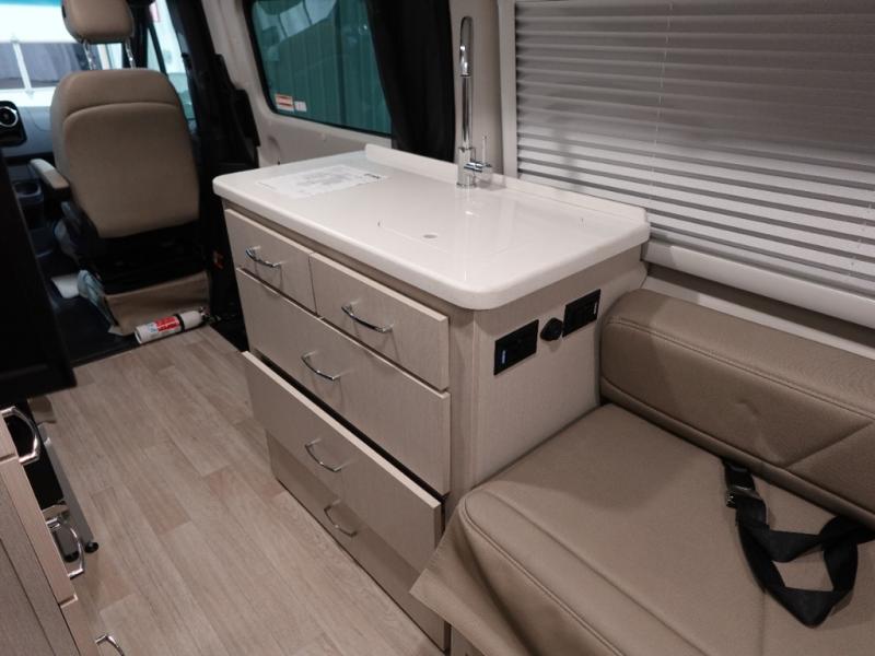 With any Sanctuary Class B diesel motorhome, you can explore off-grid thanks to the solar charging system which includes a 200-watt solar panel and charge controller to keep your house batteries full without overcharging. The Winegard ConnecT 2.0 works as your WiFi extender, 4G hotspot, and TV antenna in case you need to stay connected, plus each model is HS/DDS satellite and cable TV ready if you want to add entertainment. Each is built on a Mercedes Sprinter 2500 or 3500 all-wheel drive chassis, depending on the model you chose, and you'll appreciate the 5,000 lb. trailer hitch for your towing needs. Inside, you'll enjoy light weight cabinetry, cassette shades, black out window coverings, and Euro-style upper cabinet doors for a more modern look.
