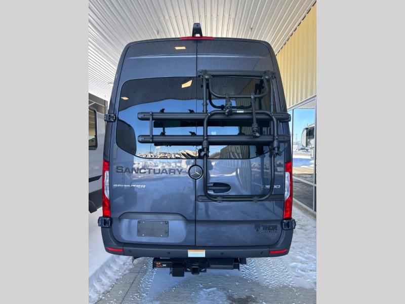 With any Sanctuary Class B diesel motorhome, you can explore off-grid thanks to the solar charging system which includes a 200-watt solar panel and charge controller to keep your house batteries full without overcharging. The Winegard ConnecT 2.0 works as your WiFi extender, 4G hotspot, and TV antenna in case you need to stay connected, plus each model is HS/DDS satellite and cable TV ready if you want to add entertainment. Each is built on a Mercedes Sprinter 2500 or 3500 all-wheel drive chassis, depending on the model you chose, and you'll appreciate the 5,000 lb. trailer hitch for your towing needs. Inside, you'll enjoy light weight cabinetry, cassette shades, black out window coverings, and Euro-style upper cabinet doors for a more modern look.