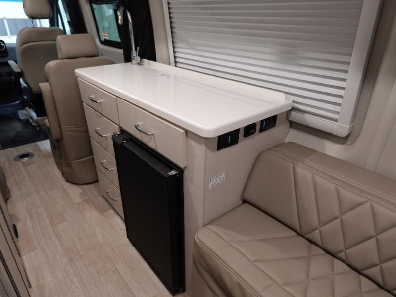 With any Sanctuary Class B diesel motorhome, you can explore off-grid thanks to the solar charging system which includes a 200-watt solar panel and charge controller to keep your house batteries full without overcharging. The Winegard ConnecT 2.0 works as your WiFi extender, 4G hotspot, and TV antenna in case you need to stay connected, plus each model is HS/DDS satellite and cable TV ready if you want to add entertainment. Inside, you'll enjoy light weight cabinetry, cassette shades, black out window coverings, and Euro-style upper cabinet doors for a more modern look.