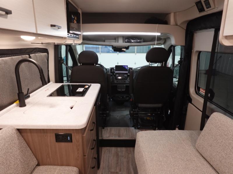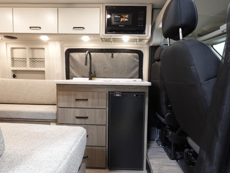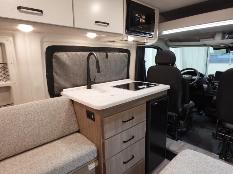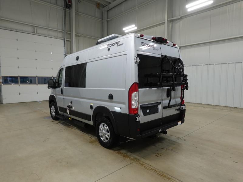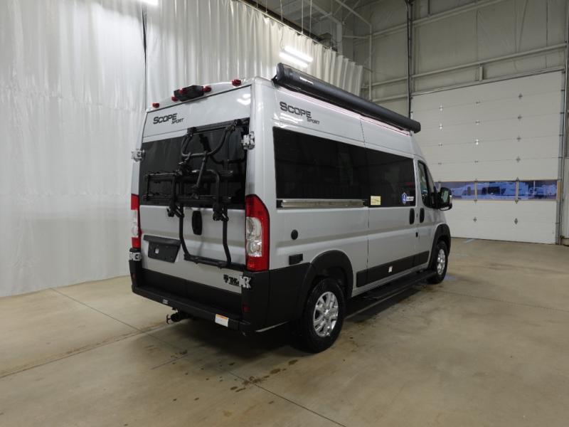 Get comfortable in this Scope Sport Class B motorhome! The seating area includes an expanding sleeper sofa which converts to a roomy 44" x 70" bed. For additional guests, there's the option to add on the Sky Bunk™ with a retractable roof top. You'll have everything you need with the rear wet bath. The driving experience will delight you with factory cover, swivel captain's chairs, touchscreen dash radio with Apple CarPlay™ & Android Auto™, keyless entry, and a telescoping steering wheel with audio buttons. You'll also appreciate the kitchen, which includes a two burner gas cooktop, microwave oven, and single door 12V electric refrigerator. The stainless steel double bowl sink includes a cover and single handle faucet for easy clean-up!