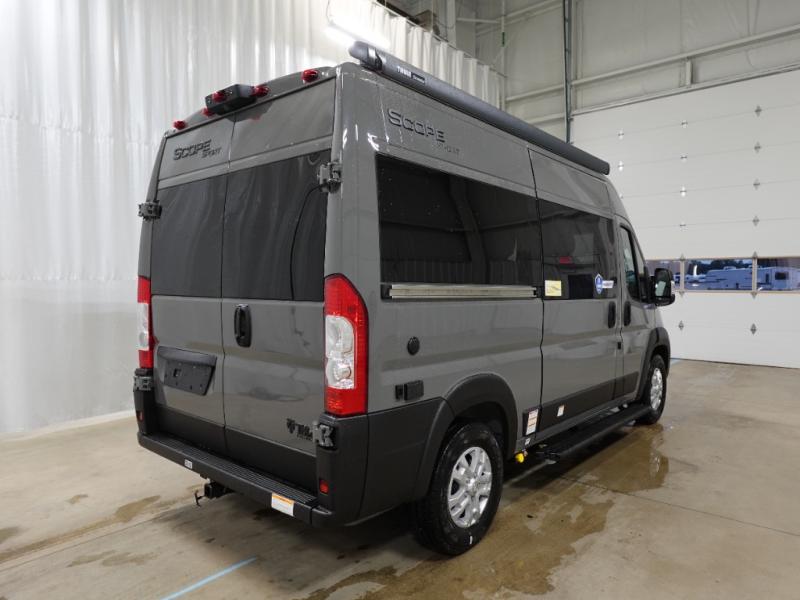 Each one of these Thor Motor Coach Scope Sport Class B gas motorhomes are built for those who want to explore the great outdoors in comfort! They are front wheel drive and constructed with a RAM Promaster 1500 XT chassis, plus a 5,000 lb. trailer hitch with 4-pin connector so you can haul even more items with you. The side steps make it easier to enter and exit the units, and the entryway screen door is an added bonus. The Sport Edition features patio awning prep, blackout zipper window shades, pressed countertops, slab style cabinet doors, and more convenient amenities. And you're sure to stay powered up by the 1000-watt inverter, 2800 gas generator, and 30-amp detachable shoreline power cord!