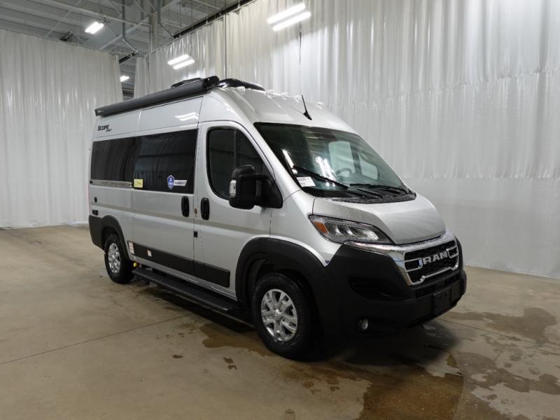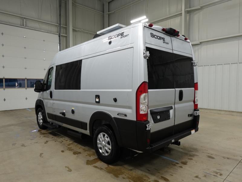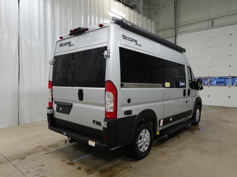Each one of these Thor Motor Coach Scope Sport Class B gas motorhomes are built for those who want to explore the great outdoors in comfort! They are front wheel drive and constructed with a RAM Promaster 1500 XT chassis, plus a 5,000 lb. trailer hitch with 4-pin connector so you can haul even more items with you. The side steps make it easier to enter and exit the units, and the entryway screen door is an added bonus. The Sport Edition features patio awning prep, blackout zipper window shades, pressed countertops, slab style cabinet doors, and more convenient amenities. And you're sure to stay powered up by the 1000-watt inverter, 2800 gas generator, and 30-amp detachable shoreline power cord!