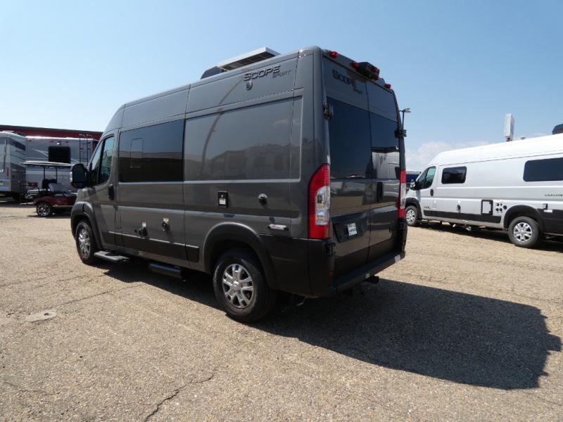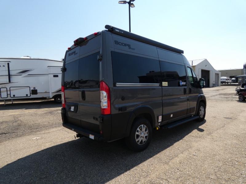 Each one of these Thor Motor Coach Scope Sport Class B gas motorhomes are built for those who want to explore the great outdoors in comfort! They are front wheel drive and constructed with a RAM Promaster 1500 XT chassis, plus a 5,000 lb. trailer hitch with 4-pin connector so you can haul even more items with you. The side steps make it easier to enter and exit the units, and the entryway screen door is an added bonus. The Sport Edition features patio awning prep, blackout zipper window shades, pressed countertops, slab style cabinet doors, and more convenient amenities. And you're sure to stay powered up by the 1000-watt inverter, 2800 gas generator, and 30-amp detachable shoreline power cord!