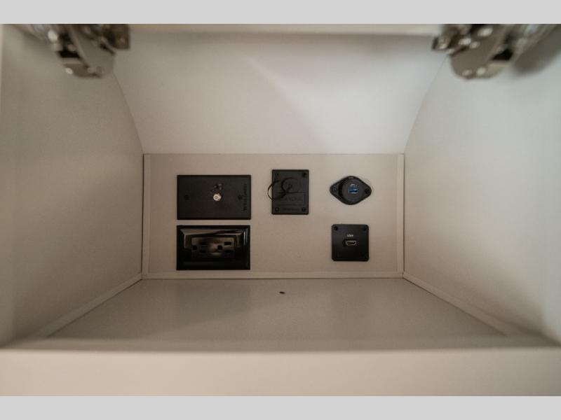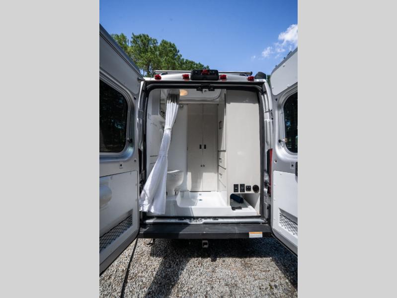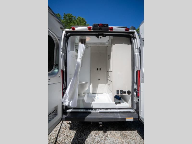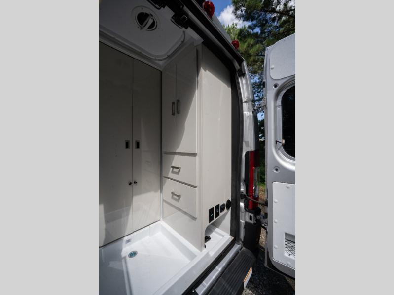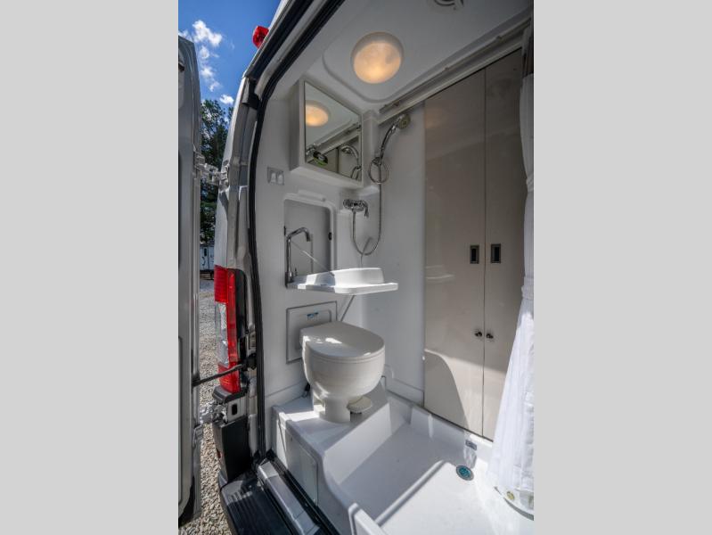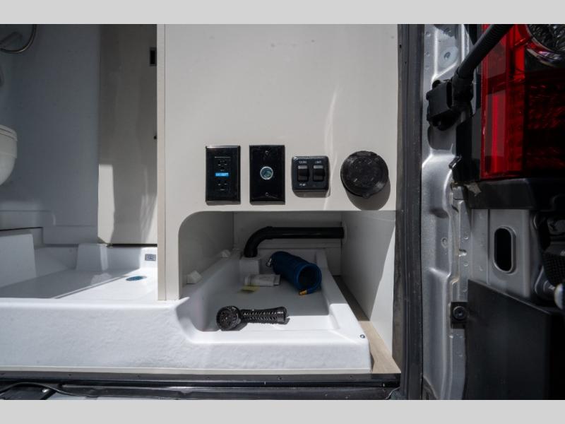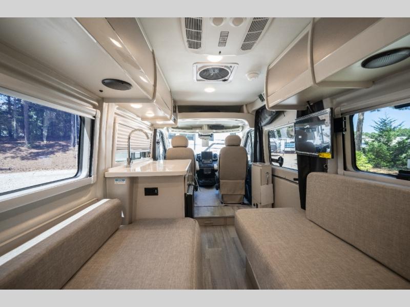 Travel the country with your favorite person in this motorhome! You can freshen up after a long day of traveling in the rear enclosed wet bath with a power vent fan to eliminate unwanted steam and a wardrobe with drawers to store your clothes and towels. Enjoy a good night's rest on the 74" x 80" expanding sleeper sofa once converted, and there is a removable table in between to dine at. The kitchen not only has a single burner induction cooktop, single door 12V refrigerator, and convection microwave, but also a flip-up countertop for more space. There are even large opening side windows to let in some fresh air and natural lighting!