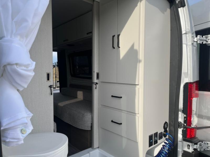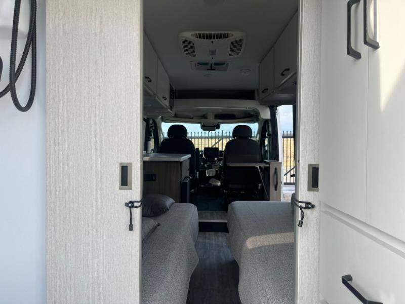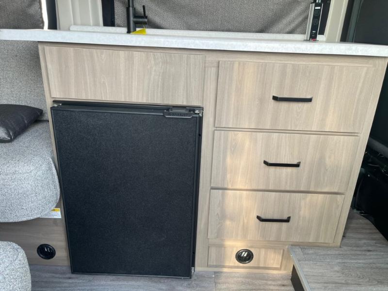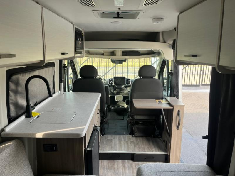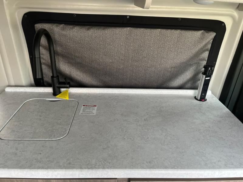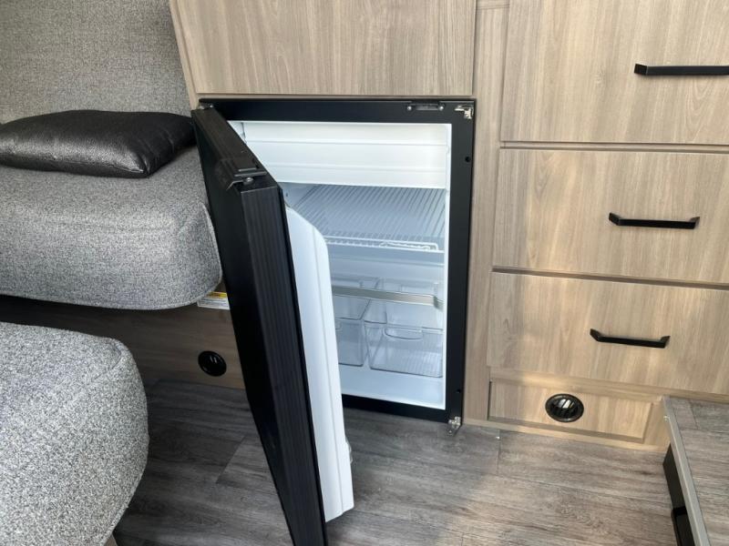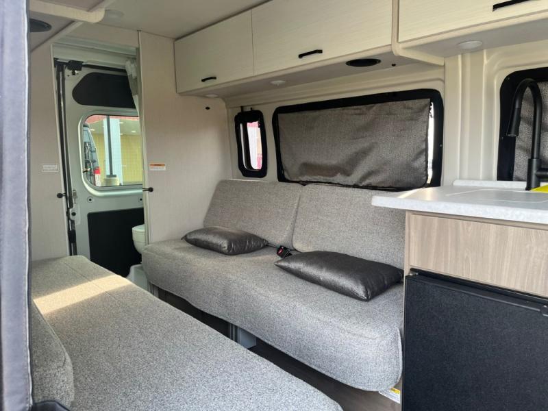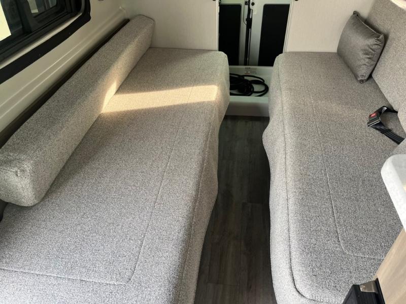 Travel the country with your favorite person in this motorhome! You can freshen up after a long day of traveling in the rear enclosed wet bath with a power vent fan to eliminate unwanted steam and a wardrobe with drawers to store your clothes and towels. Enjoy a good night's rest on the 74" x 80" expanding sleeper sofa once converted, and there is a removable table in between to dine at. The kitchen not only has a single burner induction cooktop, single door 12V refrigerator, and convection microwave, but also a flip-up countertop for more space. There are even large opening side windows to let in some fresh air and natural lighting!