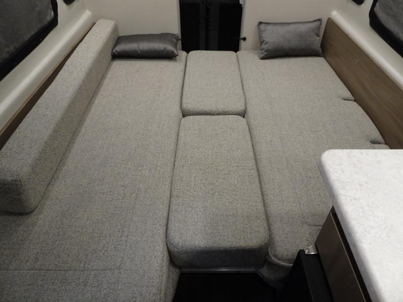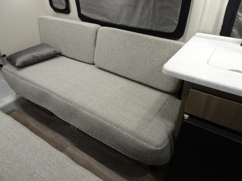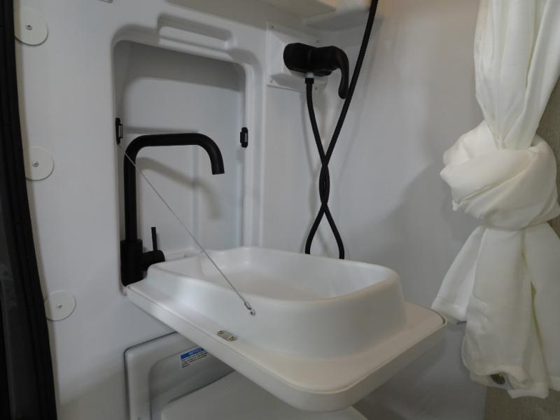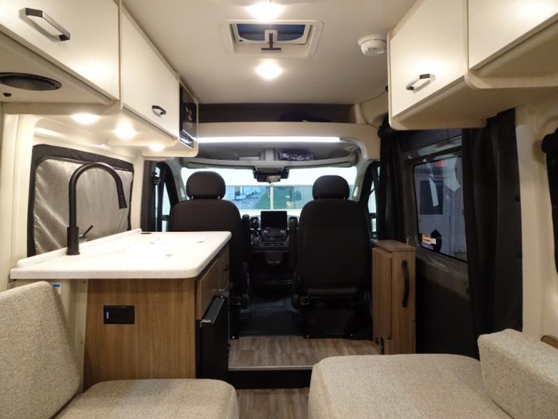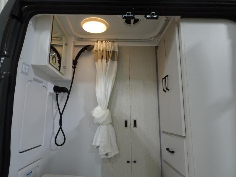 Travel the country with your favorite person in this motorhome! You can freshen up after a long day of traveling in the rear enclosed wet bath with a power vent fan to eliminate unwanted steam and a wardrobe with drawers to store your clothes and towels. Enjoy a good night's rest on the 74" x 80" expanding sleeper sofa once converted, and there is a removable table in between to dine at. The kitchen not only has a single burner induction cooktop, single door 12V refrigerator, and convection microwave, but also a flip-up countertop for more space. There are even large opening side windows to let in some fresh air and natural lighting!