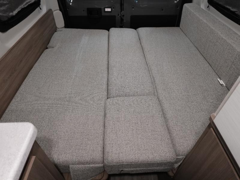 This is the perfect motorhome for you and your partner! The rear area features two sofas that effortlessly convert to a spacious full-width bed, measuring 72” x 66” for a restful night's sleep. A removable table provides a convenient spot for meals, work, or play, while a closet offers ample storage for your belongings. The wet bath is practical and efficient, and a portable cooktop, sink, and fridge provide all the necessary appliances to cook your favorite dishes each day. Factory cover, swivel chairs add a touch of luxury, and a microwave gives quick and easy meal solutions. With its functional design and comfortable amenities, this motorhome is perfect for couples or solo travelers seeking a relaxing getaway.