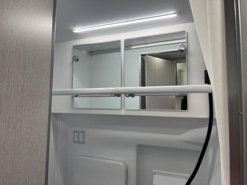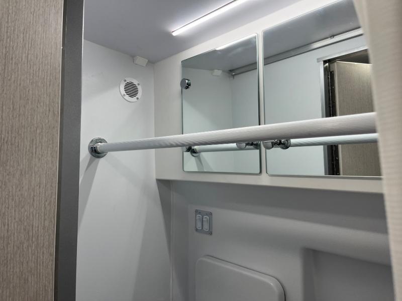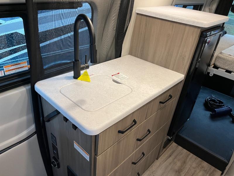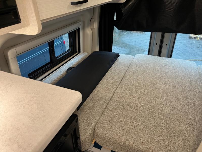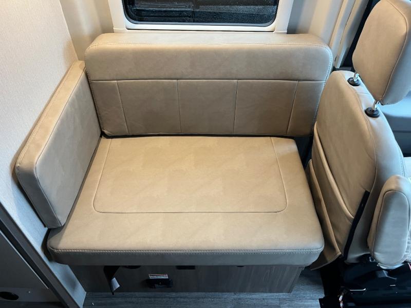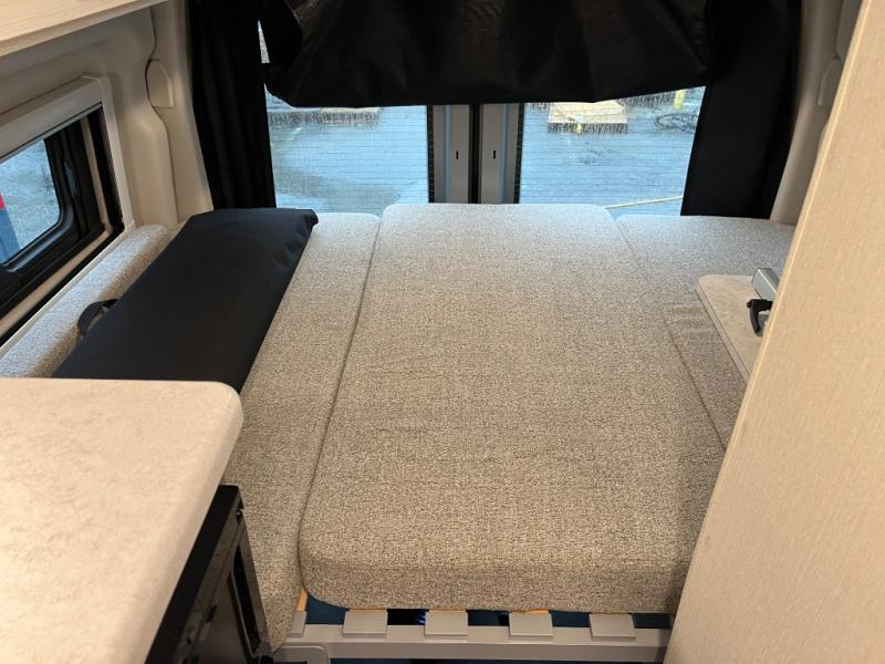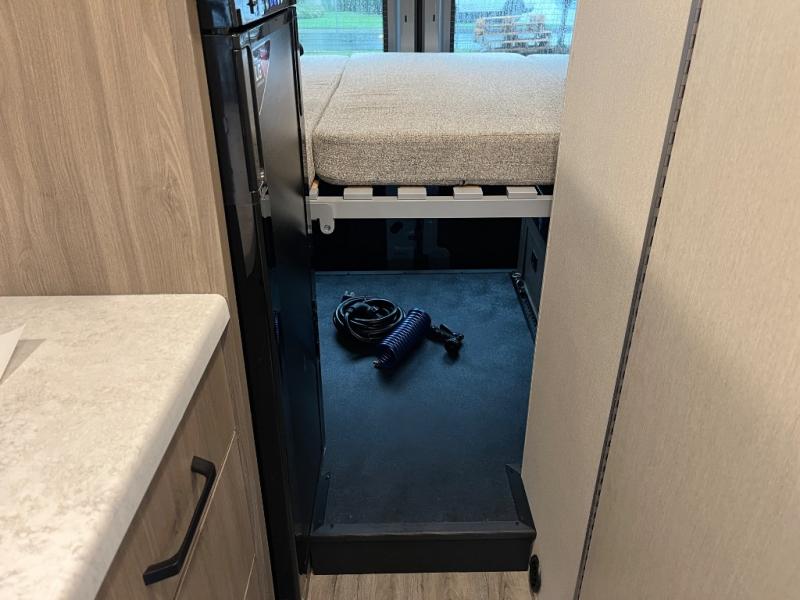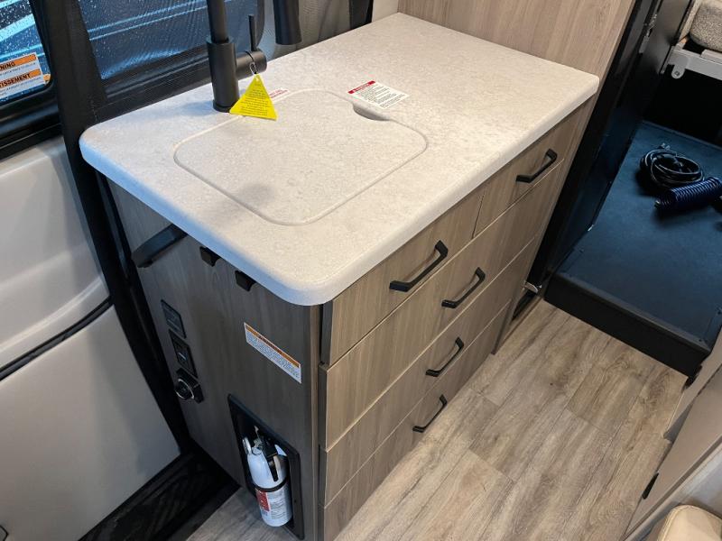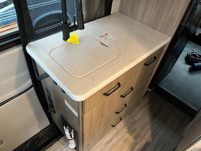 You will have everything you need to travel the countryside in this motorhome! With a rear 51" x 74" bed, you can get a good night's rest after a long day of road tripping. The sofa with a removable table offers versatility for eating delicious meals prepared on the single burner induction portable cooktop and a comfortable place to let your stomach settle. You won't have to use the public facilities either thanks to the wet bath with a deluxe shower curtain and power bath vent with a wall switch.