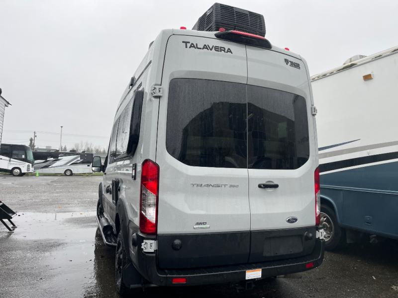 Each Thor Motor Coach Talavera Class B gas motorhome is the ultimate choice for those looking for outdoor adventures. The Ford Transit Trail™ AWD chassis with a 3" body lift, wider track, black alloy wheels and all-terrain tires will hold up through every excursion and lets you go farther into the great outdoors. The upgraded Transit Trail grille and wheel arch cladding give the exterior a rugged, purposeful look. Stay safe on the road with Transit safety features including blind spot assist, a high-resolution digital camera, reverse sensing system, side sensing system and adaptive cruise control. Inside, residential vinyl flooring is easy to clean, and the large opening side windows help bring in fresh air and natural sunlight. Come choose your favorite one today!